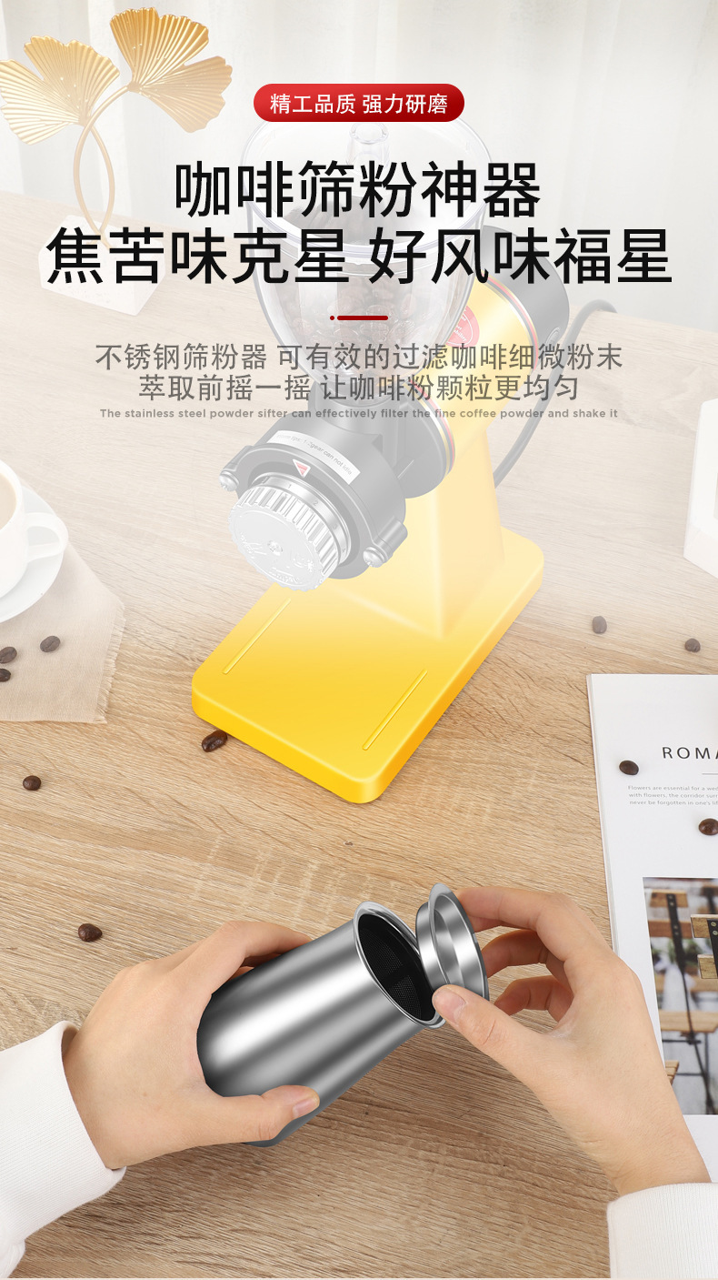 • [플래그십 모델] 노란색/60MM 스테인레스 스틸 분쇄 디스크 + 분말 상자 + 분말 체