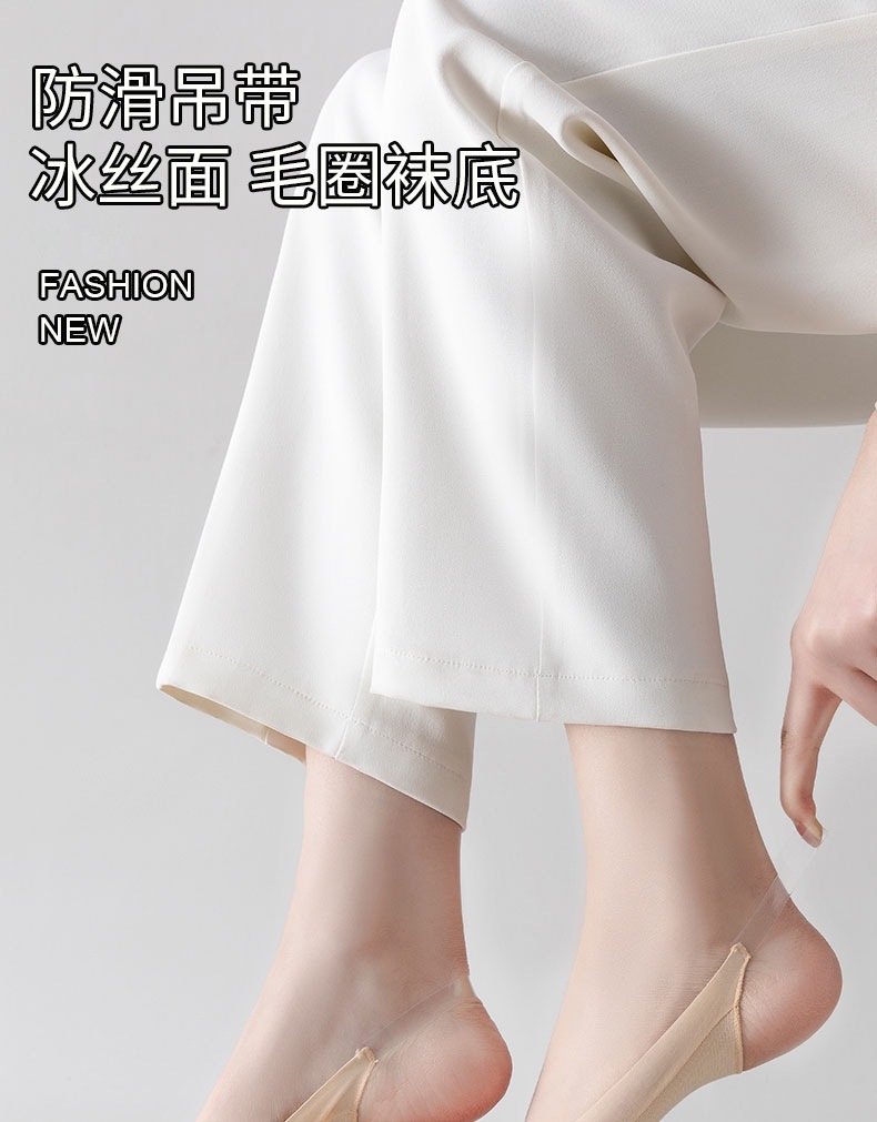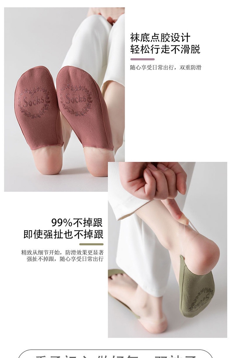 여성 보이지 않는 슬링 아이스 실크 하프 팜 양말 여성 여름 얇은 보트 양말 입 충격 보이지 않는 양말 미끄럼 방지 힐 양말