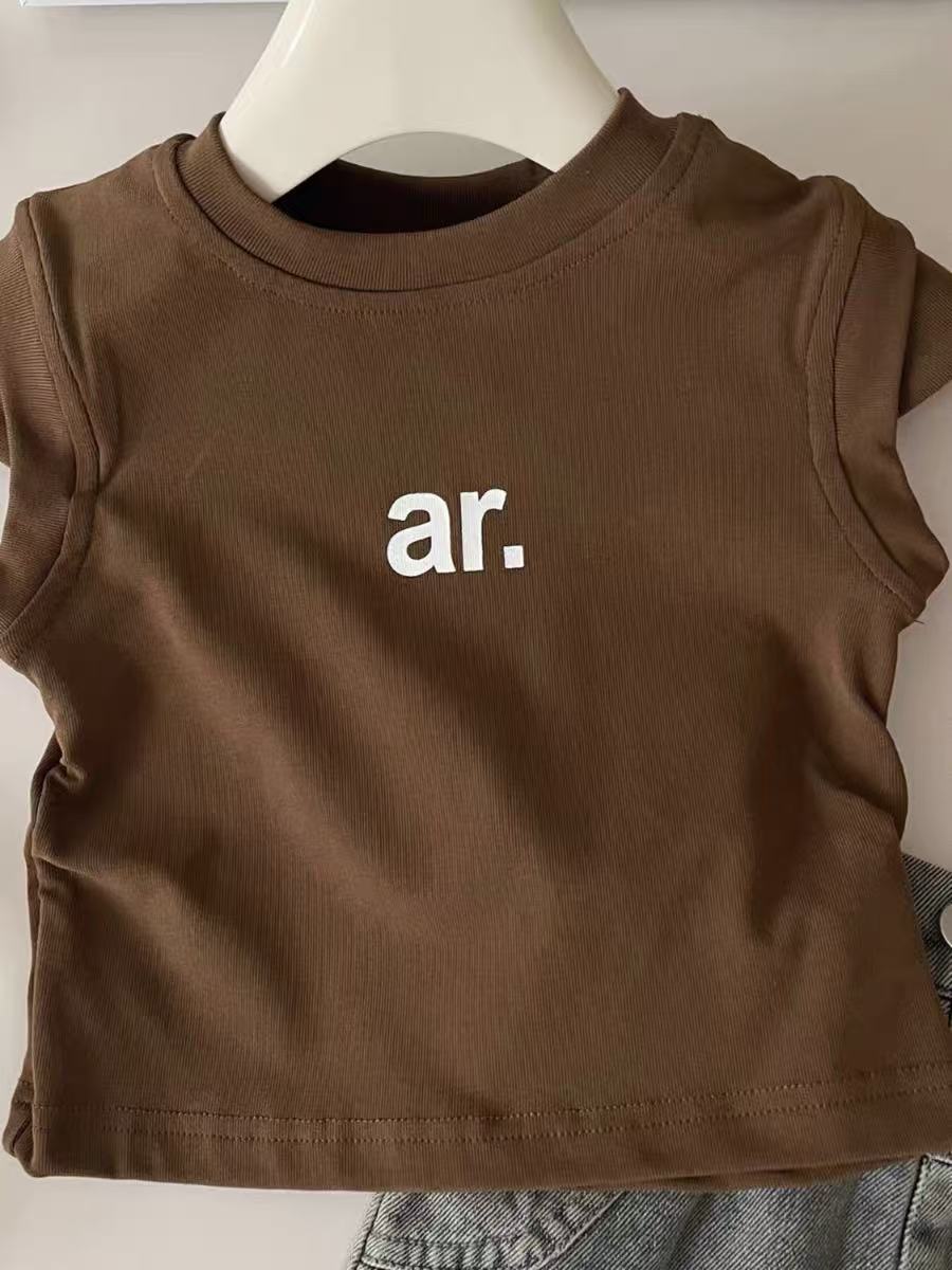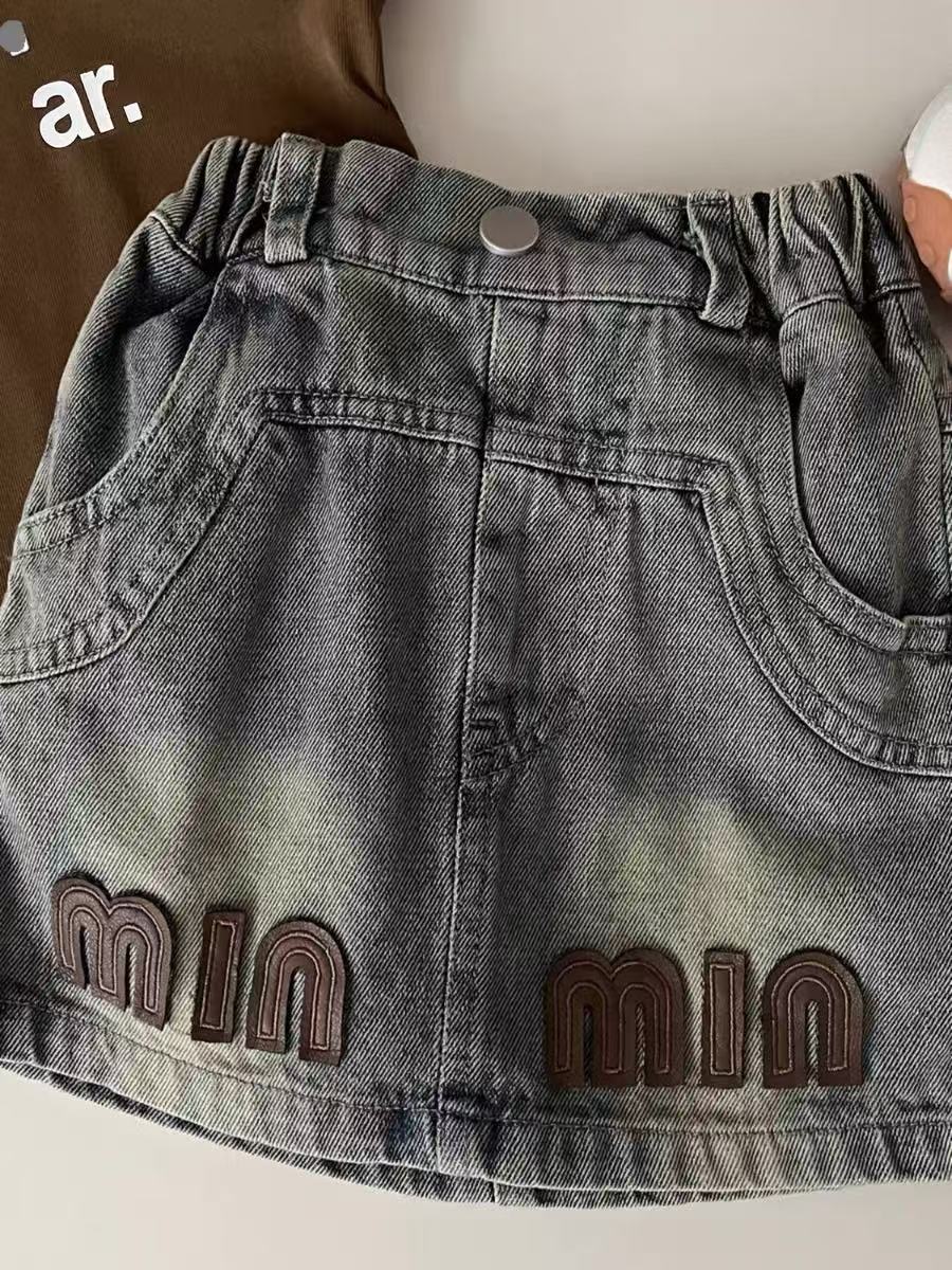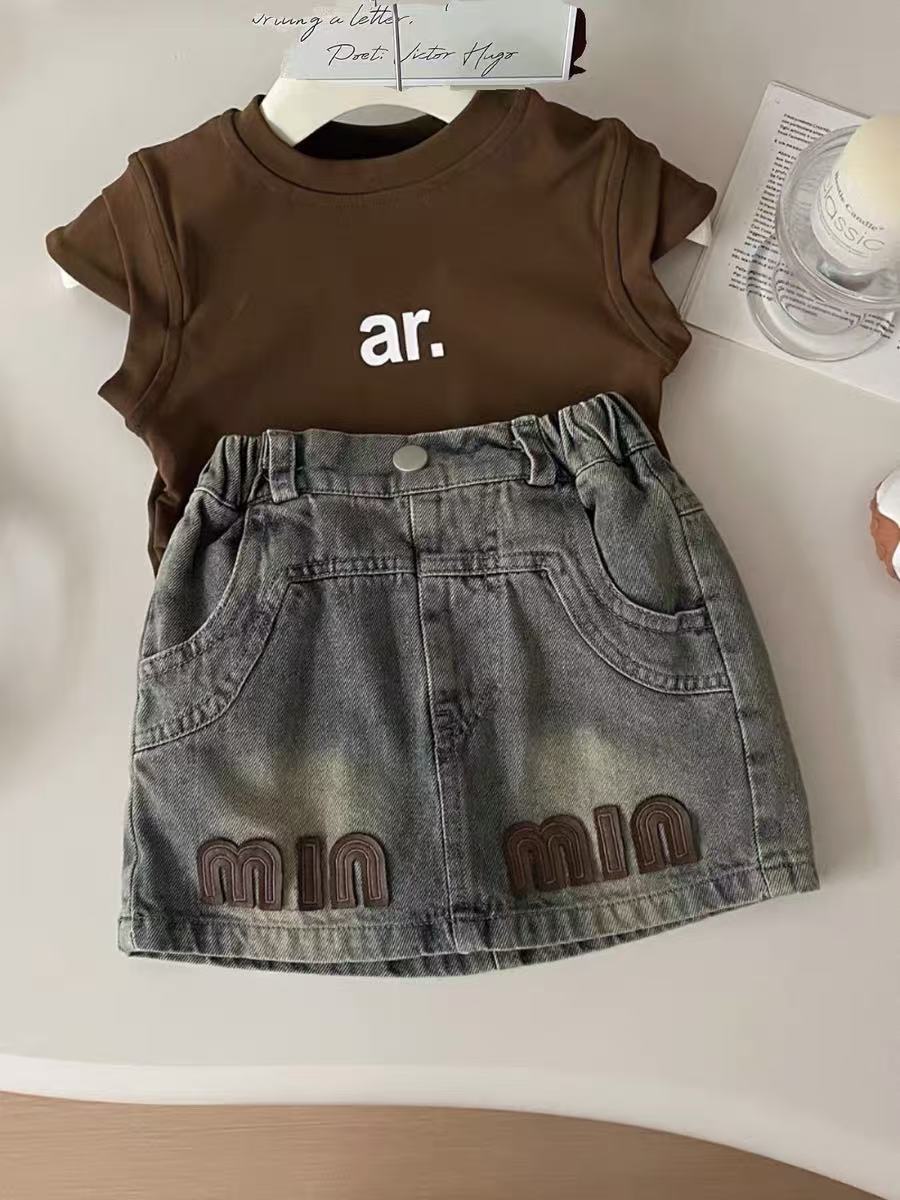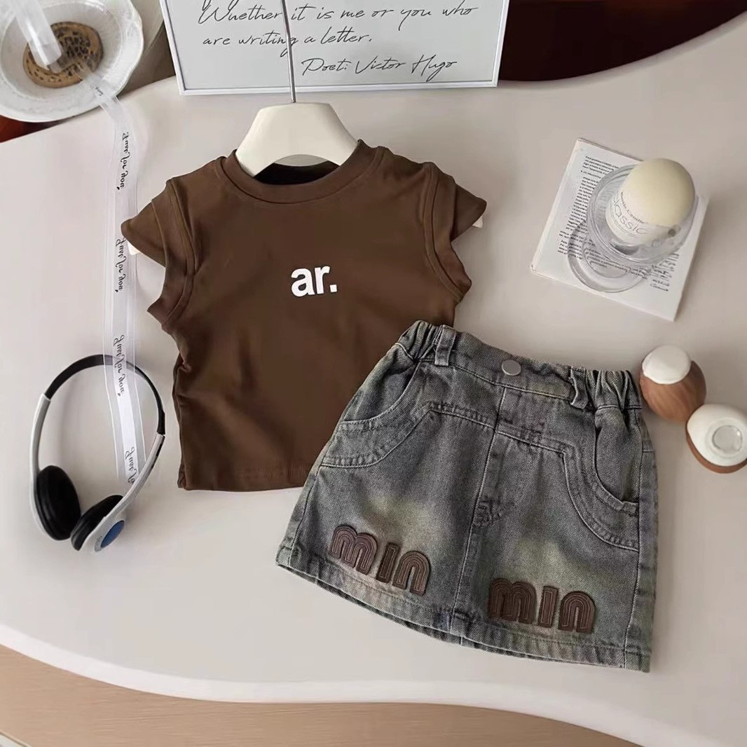 어린 소녀 한국 캐주얼 세트 여름 새로운 소녀 외국 스타일 티셔츠 데님 반바지 투피스 55192