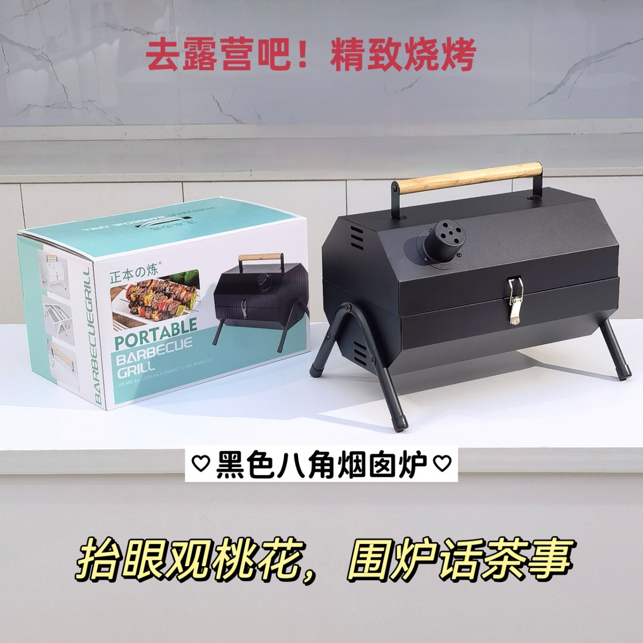 새로운 팔각형 굴뚝 스토브 야외 편리한 탄소 그릴 가정용 휴대용 양면 바베큐 그릴 바베큐 그릴스토어 가기