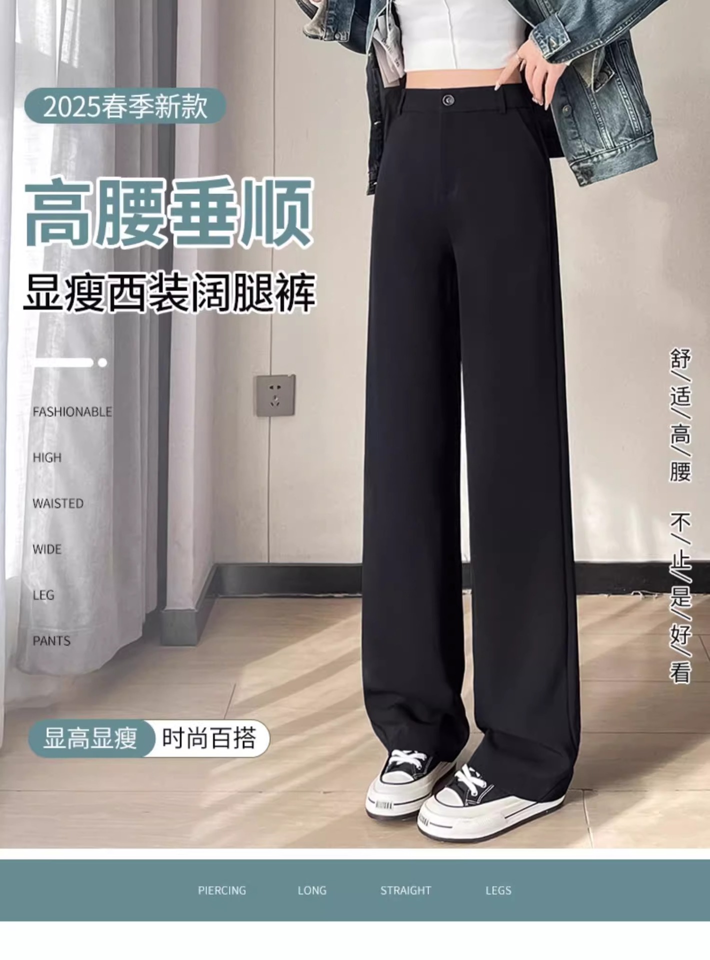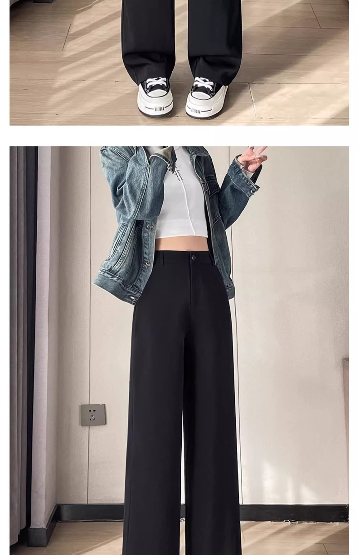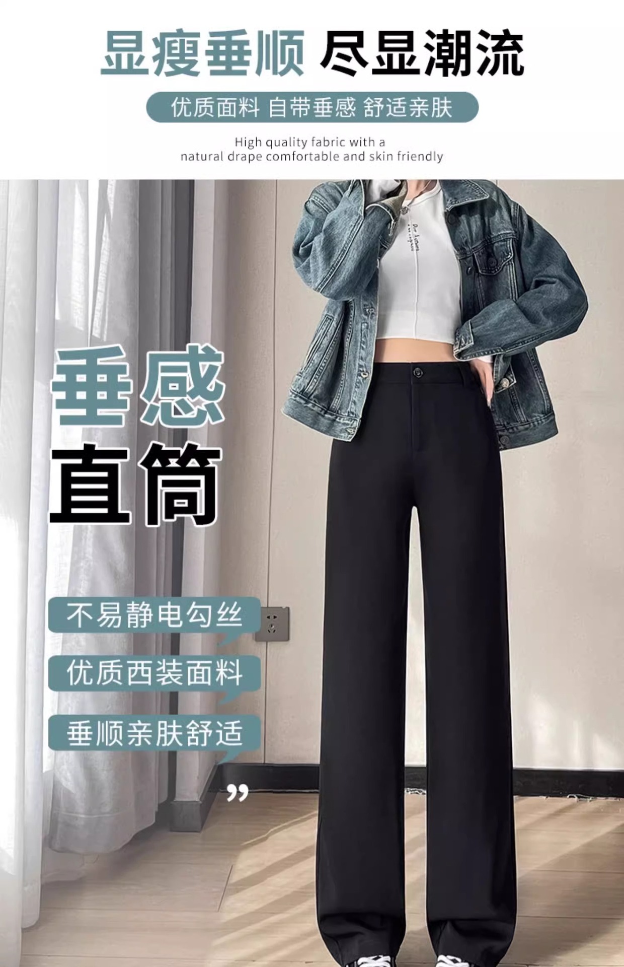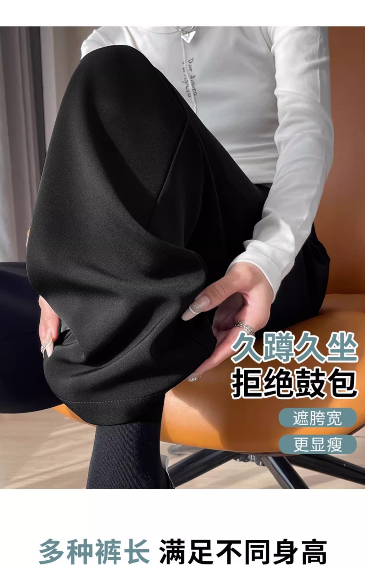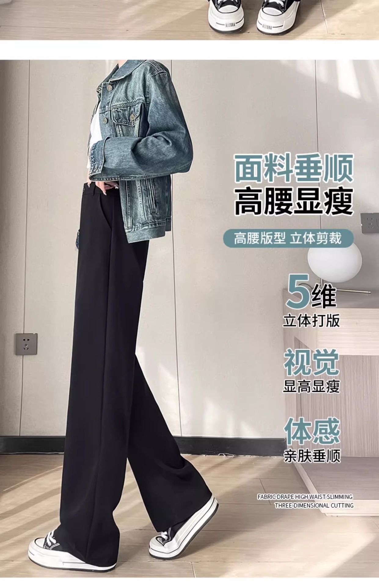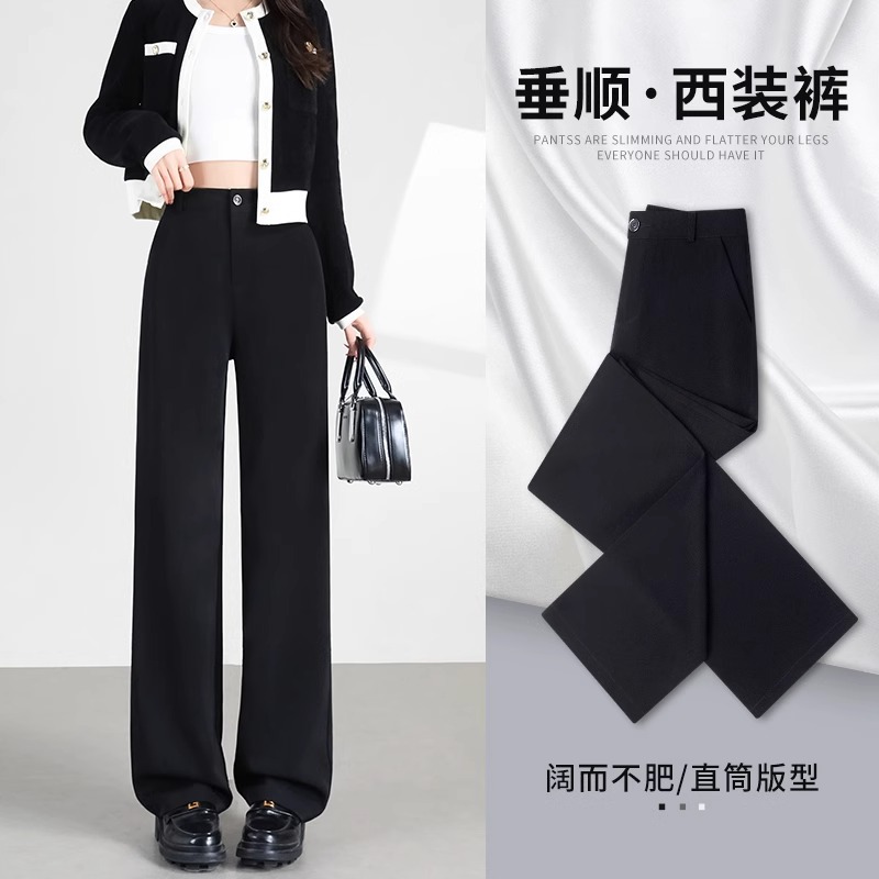 검은 세트 바지 여성의 봄과 가을 2025 새로운 배 모양의 피겨 하이 엔드 슬래그 슬리밍 좁은 넓은 다리 스트레이트 바지스토어 가기
