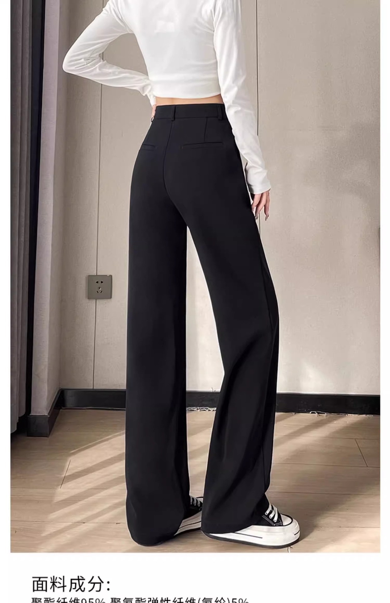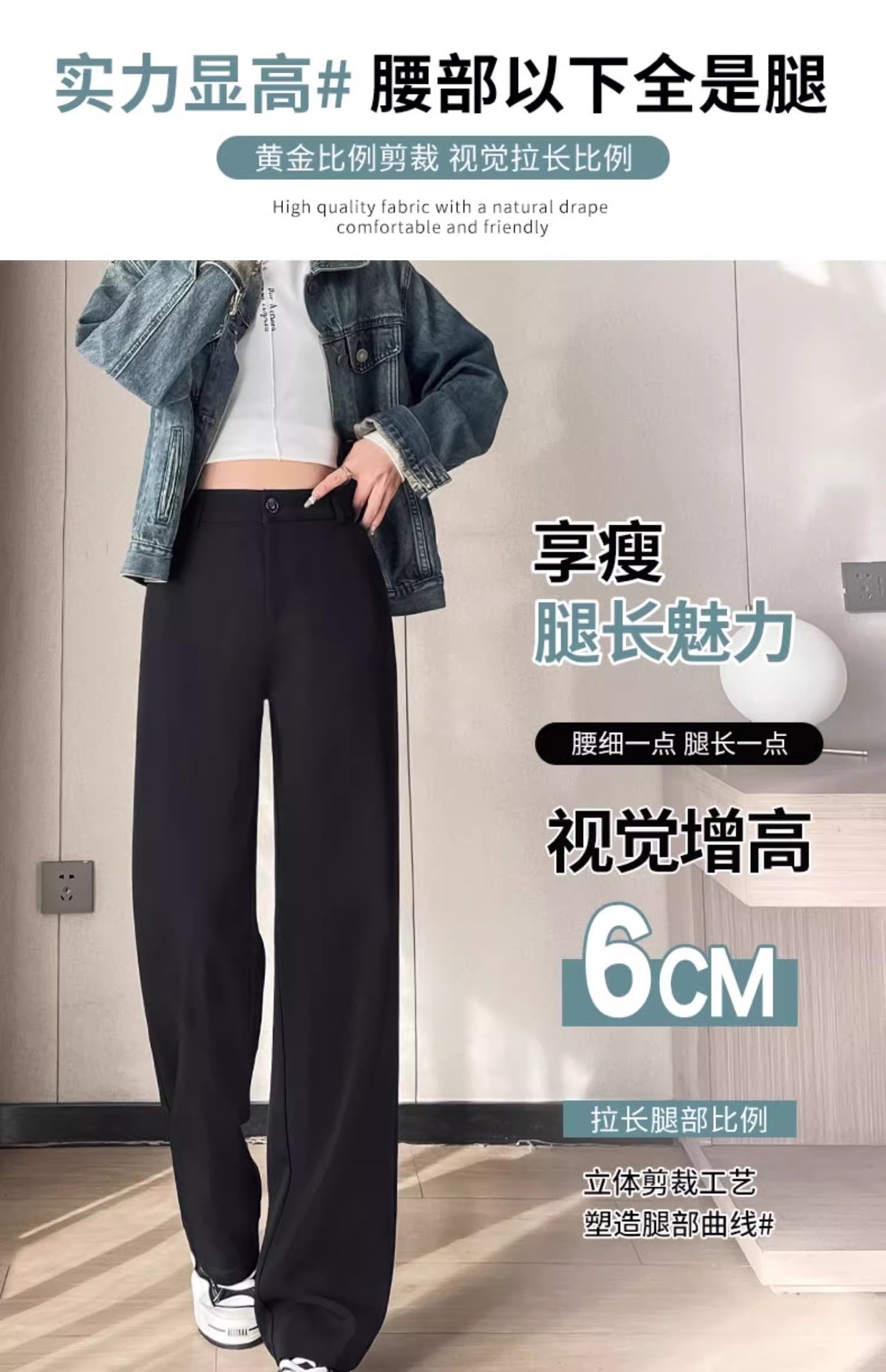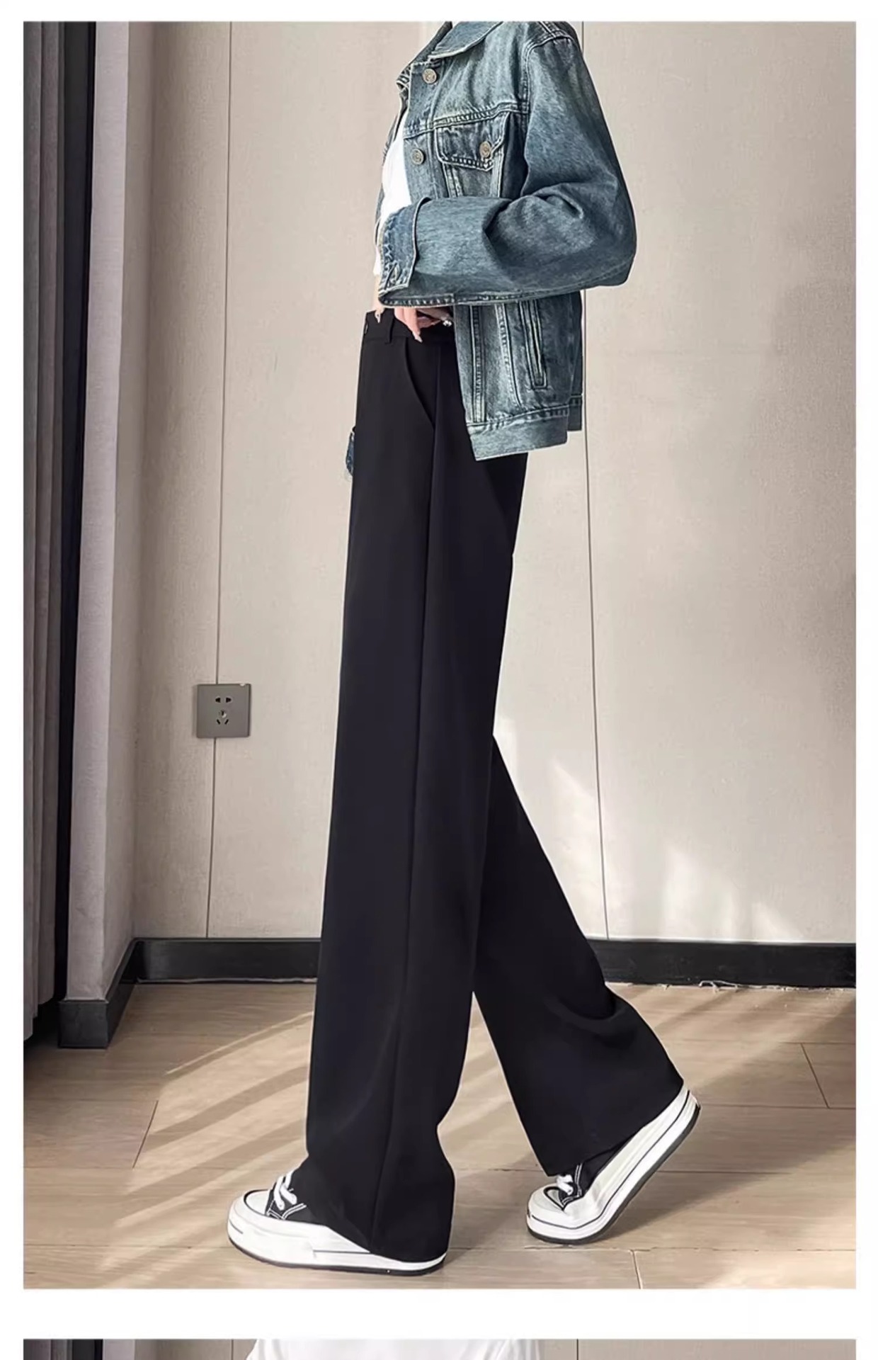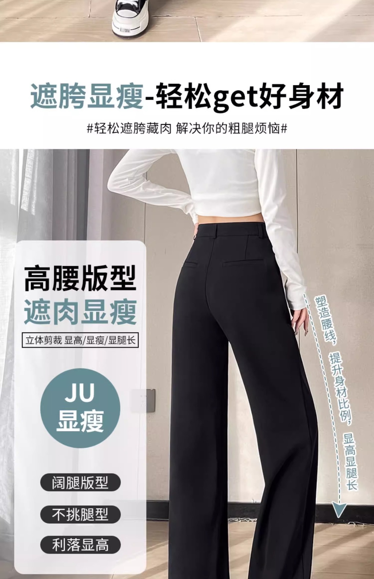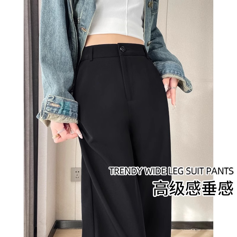 검은 세트 바지 여성의 봄과 가을 2025 새로운 배 모양의 피겨 하이 엔드 슬래그 슬리밍 좁은 넓은 다리 스트레이트 바지스토어 가기
