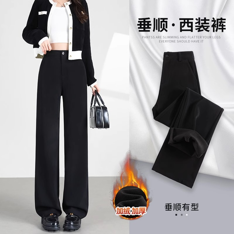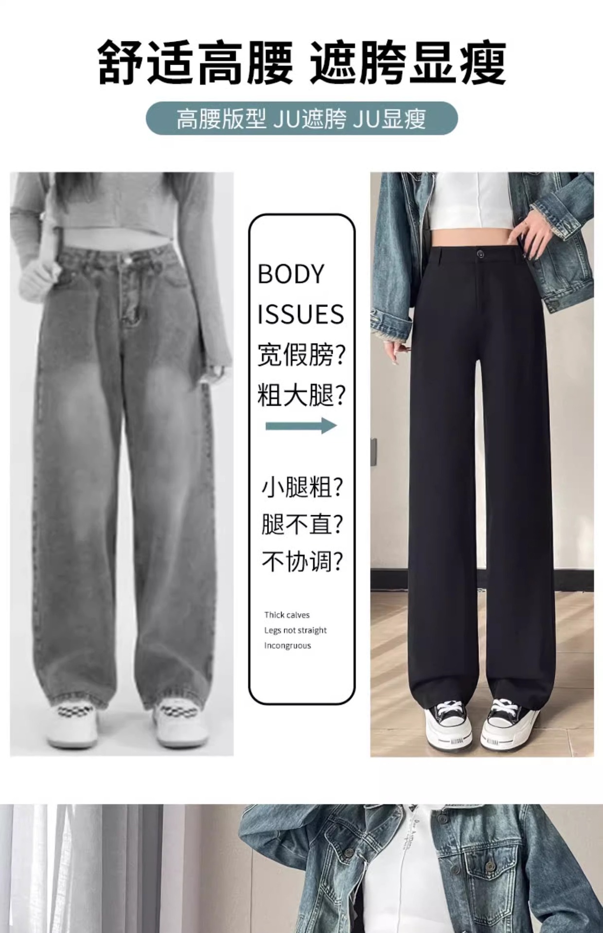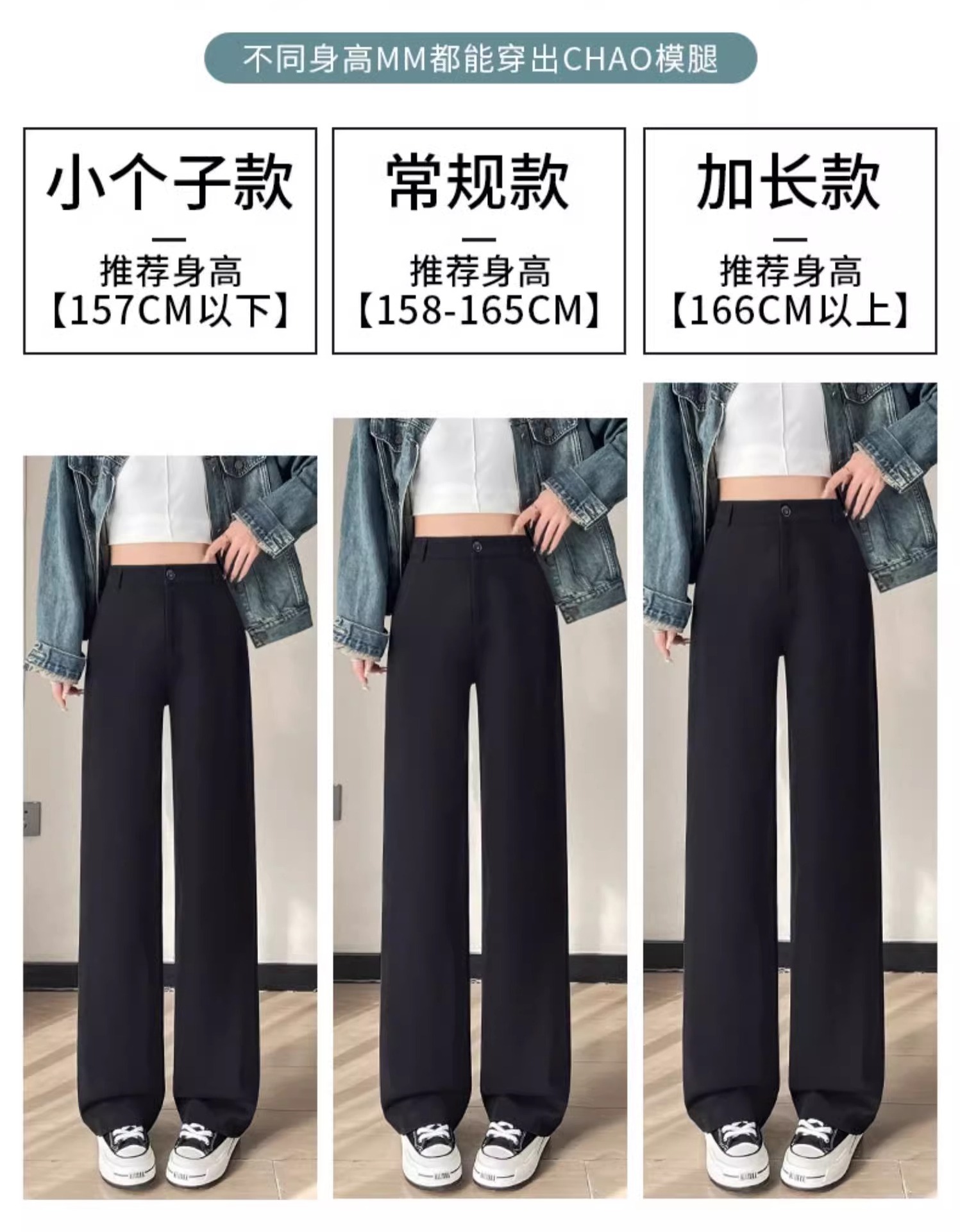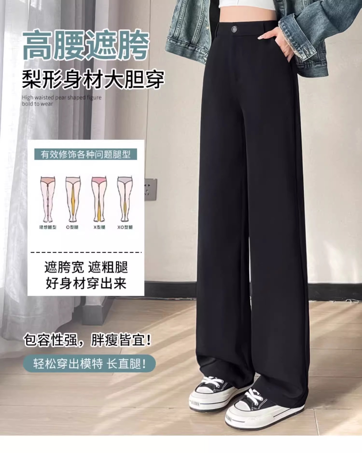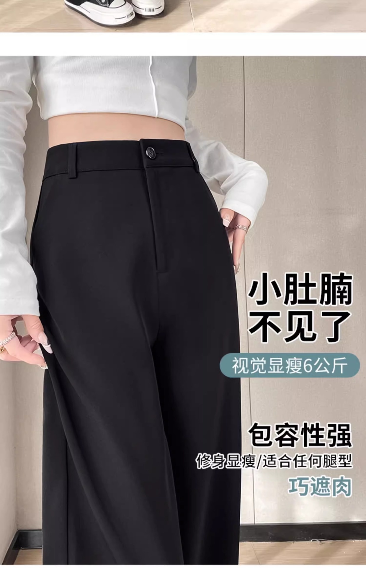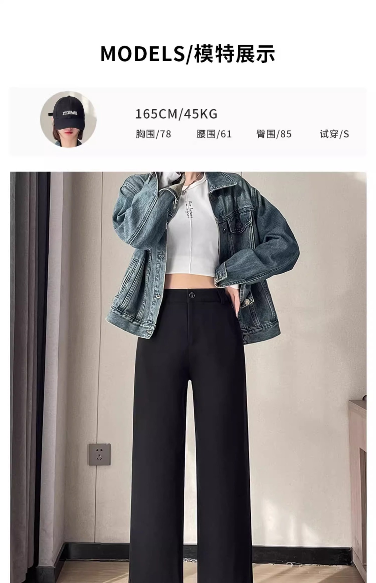 검은 세트 바지 여성의 봄과 가을 2025 새로운 배 모양의 피겨 하이 엔드 슬래그 슬리밍 좁은 넓은 다리 스트레이트 바지스토어 가기