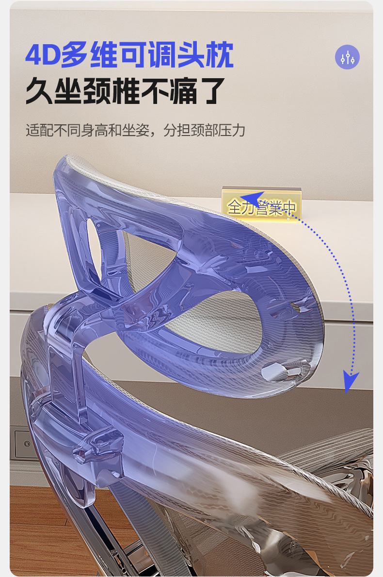 • 기본모델 [화이트 프레임 그레이 메쉬] 발판 없는 9CM 두께의 스펀지쿠션 + 리클라이닝 150°