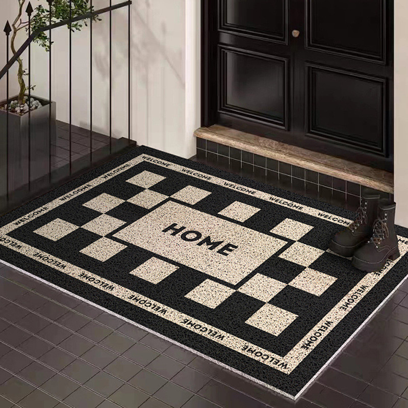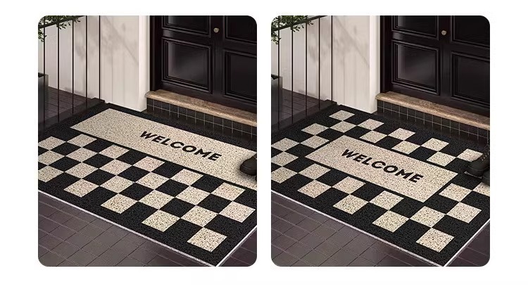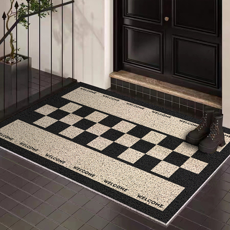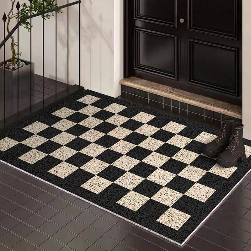 프렌치 스타일 라이트 럭셔리 체크 보드 와이어 링 입구 도어 풋 매트 미끄럼 방지 내마모성 먼지 방지 쉬운 케어 풋 매트