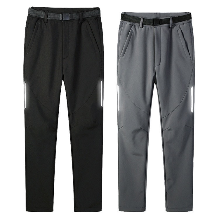 새로운 가을과 겨울 야외 소프트 쉘 충전 바지 남성용 방수 방풍 기모 두꺼운 등산 캐주얼 바지 반사 바지