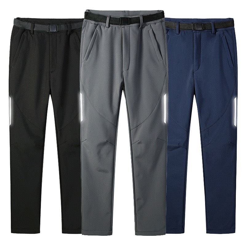 새로운 가을과 겨울 야외 소프트 쉘 충전 바지 남성용 방수 방풍 기모 두꺼운 등산 캐주얼 바지 반사 바지스토어 가기