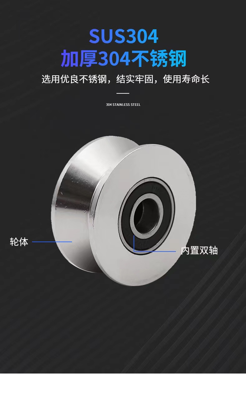 304 스테인레스 스틸 레일 휠 슬라이딩 도어 휠 가이드 레일 가이드 휠 U 자형 홈 휠 V 자형 휠 와이어 로프 리프팅 크라운 블록