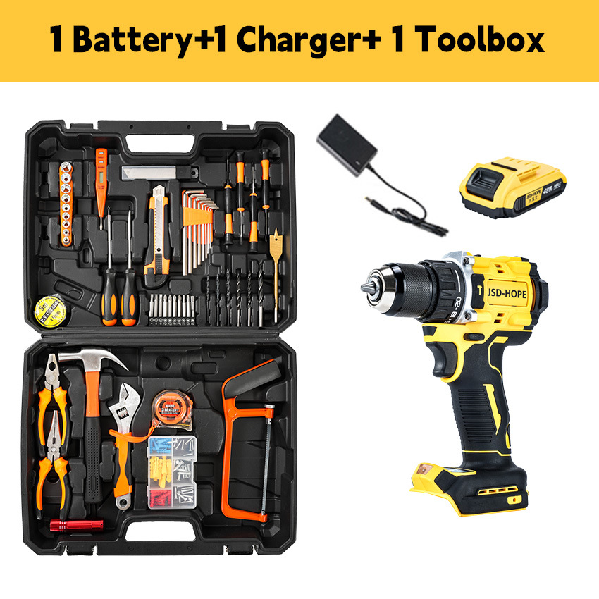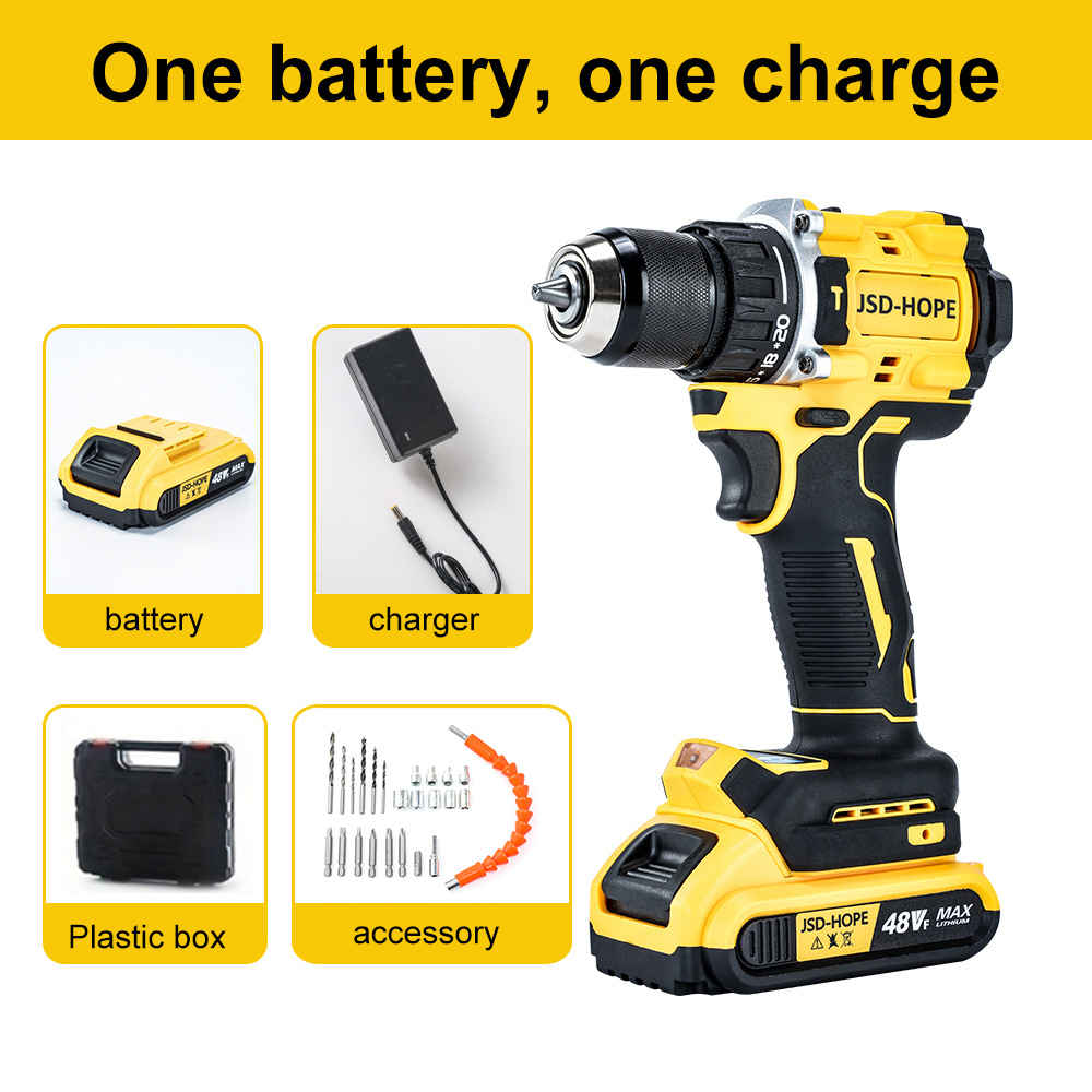 • 48VF LJ 브러시리스 노란색 전기 드릴, 배터리 1개 및 충전 1개, 종이 상자