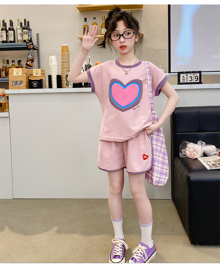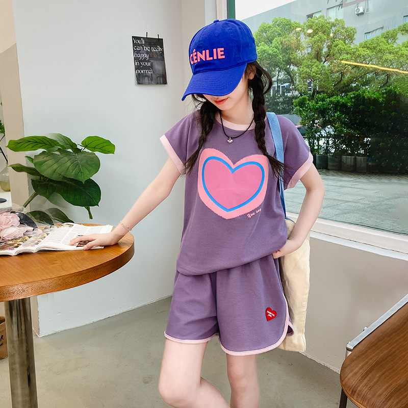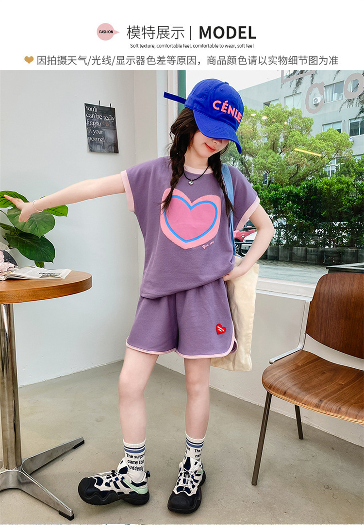 소녀의 큰 소년 여름 2025 새로운 서양 스타일 큰 소년 느슨한 스마일 반팔 반바지 스포츠 투피스 인터넷 레드 세트