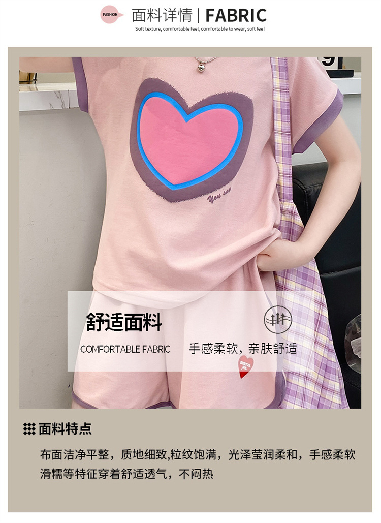 소녀의 큰 소년 여름 2025 새로운 서양 스타일 큰 소년 느슨한 스마일 반팔 반바지 스포츠 투피스 인터넷 레드 세트스토어 가기