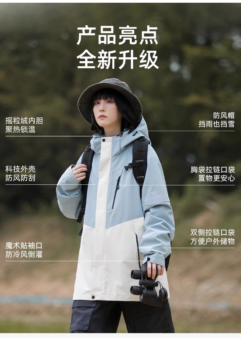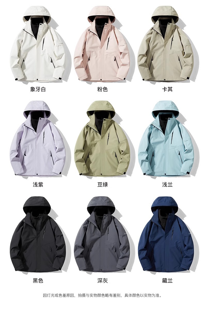 남성과 여성을위한 야외 폭행 의류 3 대 1 봄, 가을, 겨울 방풍 방수 분리 가능한 밍크 벨벳 따뜻한 라이너 코트스토어 가기