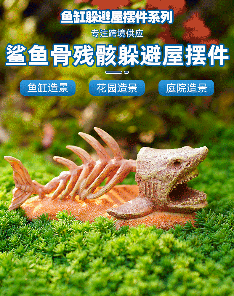 국경 간 공급 어항 풍경 상어 뼈 잔해 물고기 탈출 집 장식 선물 수지 공예스토어 가기