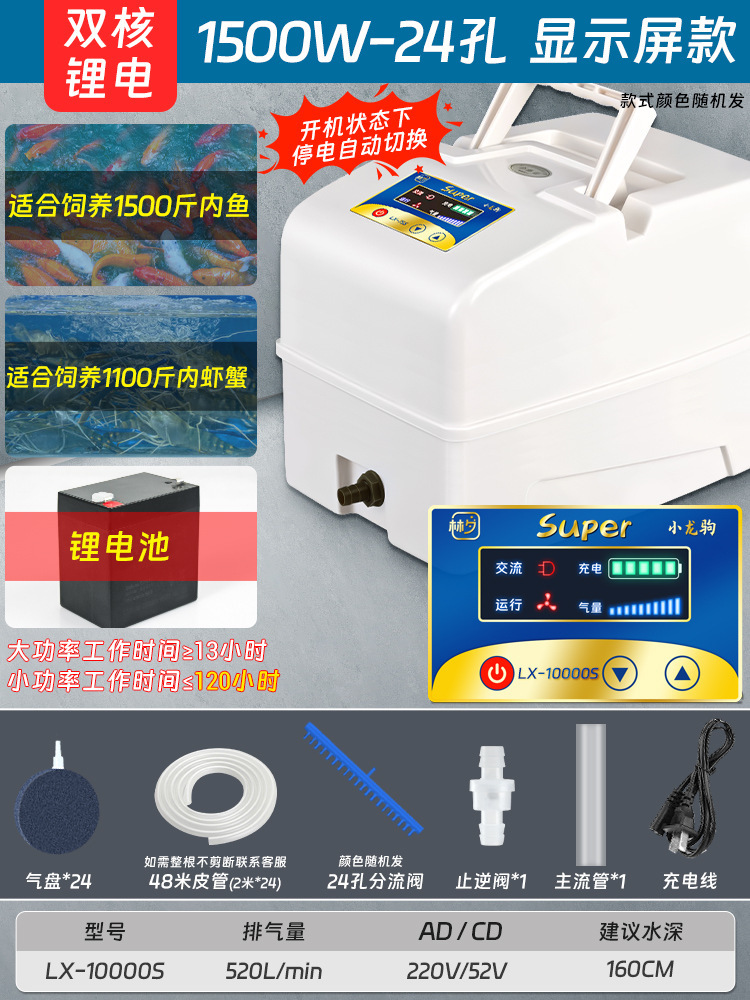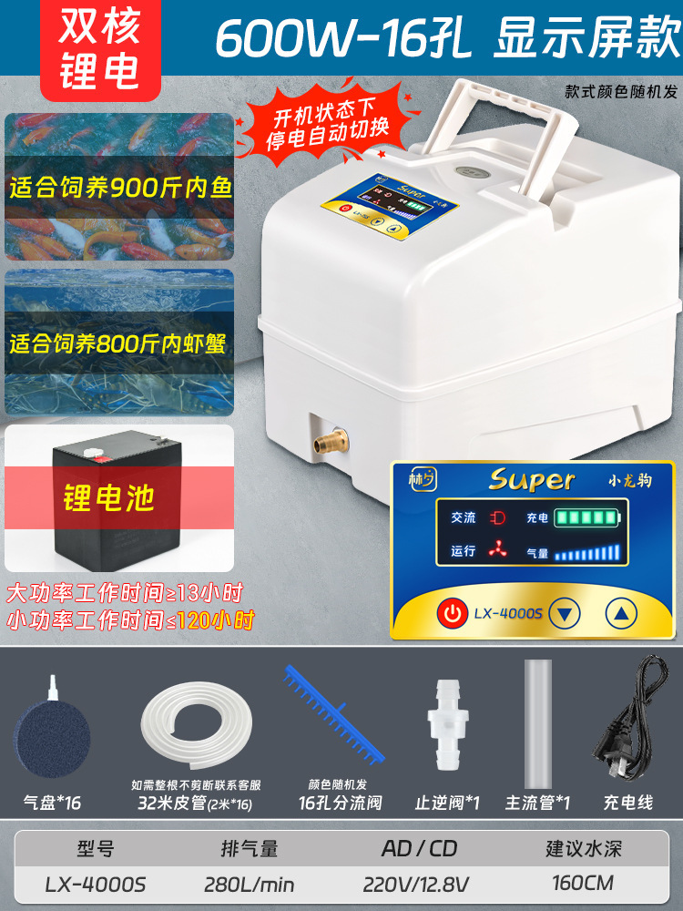 AC-DC 에어 레이터 낚시 이중 목적 충전 산소 펌프 고출력 어류 양식 산소 펌프 판매 생선 산소 펌프