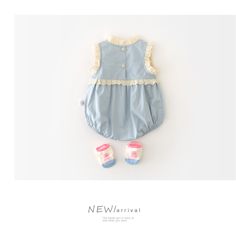 2025 년 여름 뉴 레이스 레이스 걸스 트라이앵글 클라이밍 세트 아기와 유아 한국 스타일 민소매 퍼피 Hap 52806스토어 가기