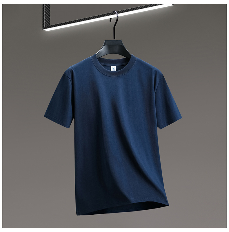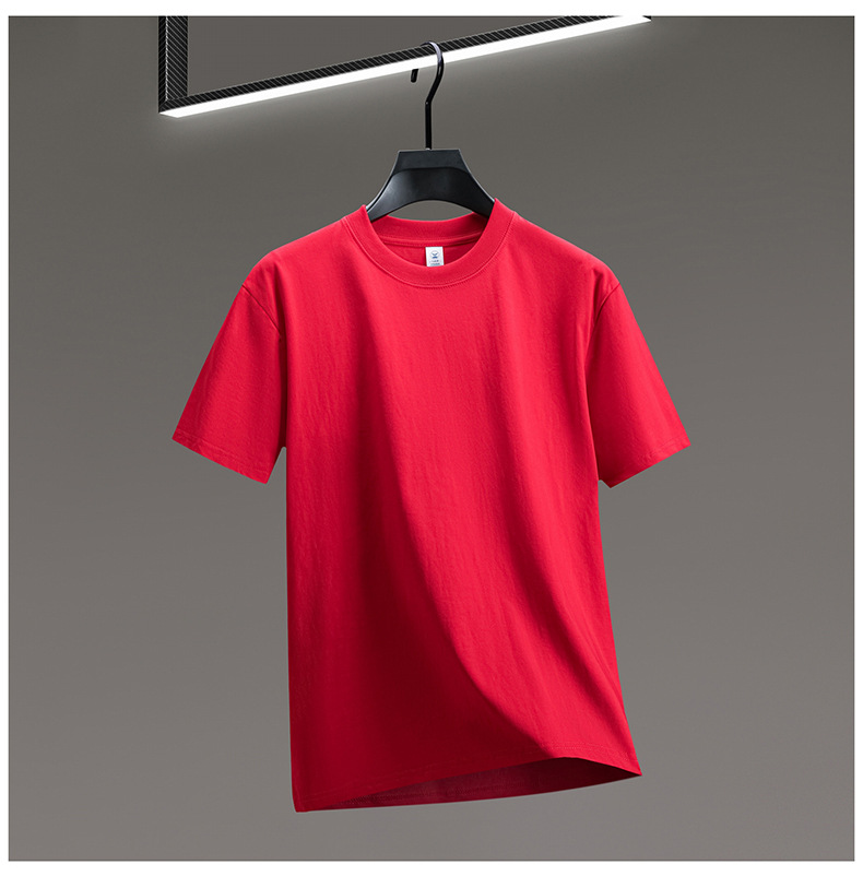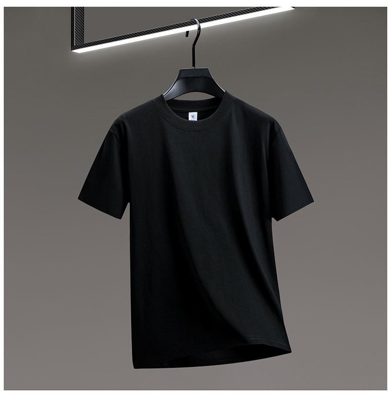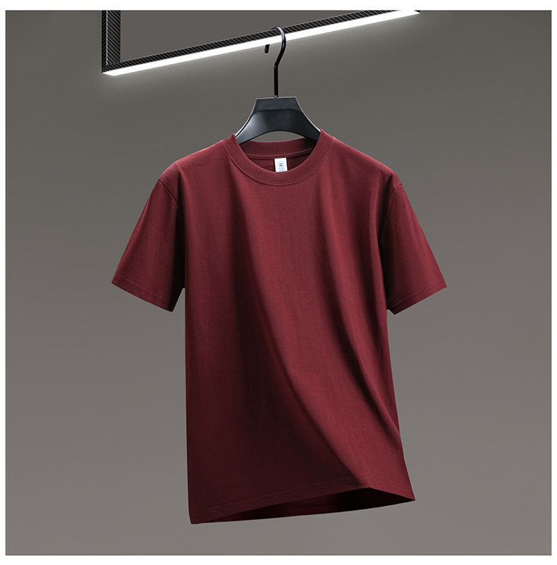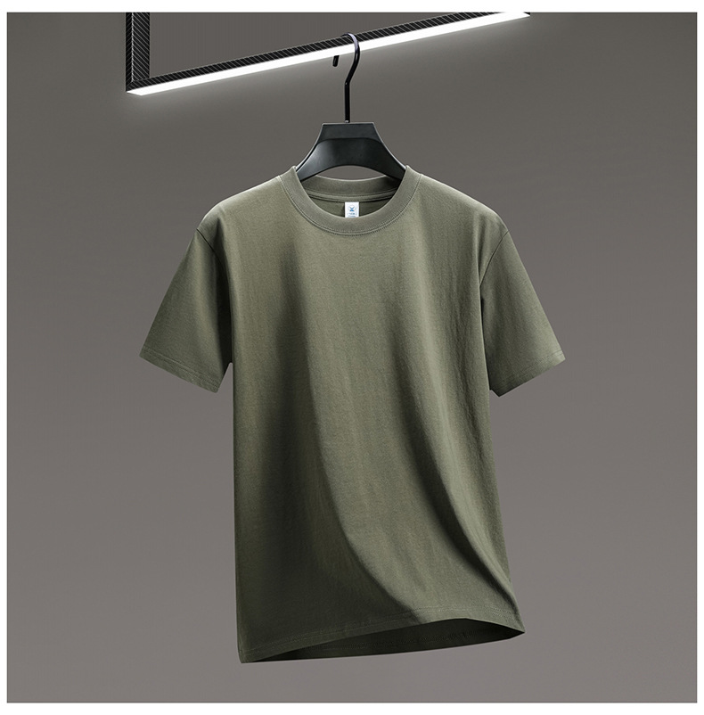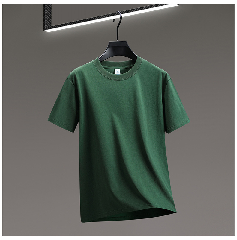 220g 헤비 코튼 티셔츠 남자 2025 년 여름 새로운 솔리드 컬러 올 매치 간단한 캐주얼 라운드 넥 남자 짧은 소매스토어 가기