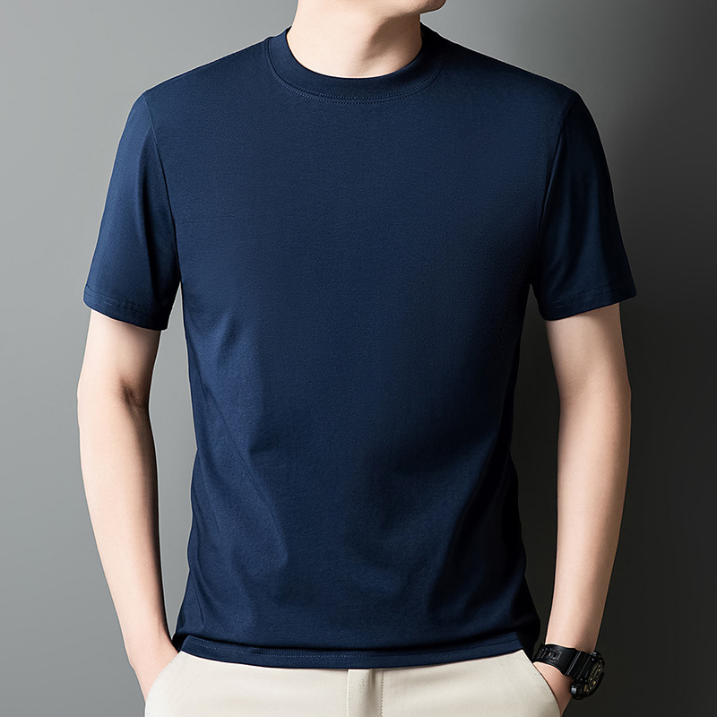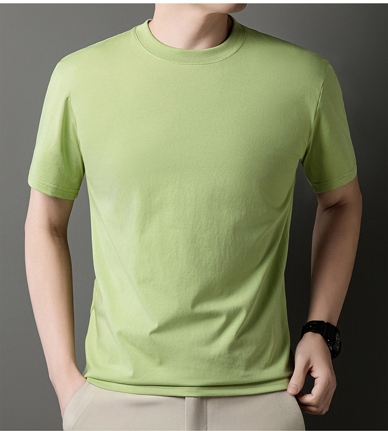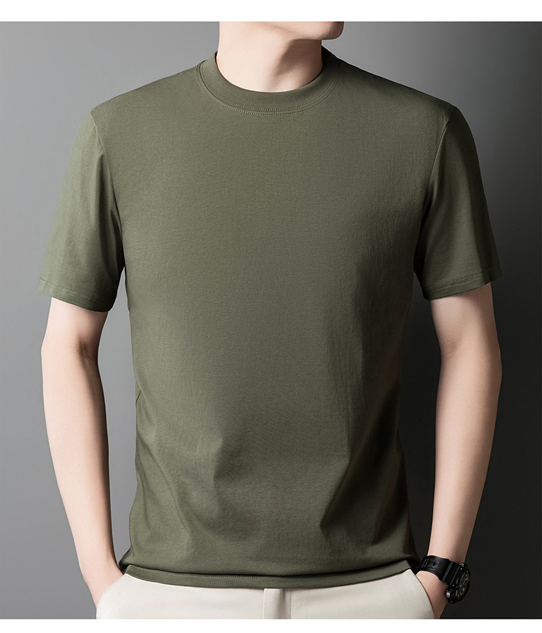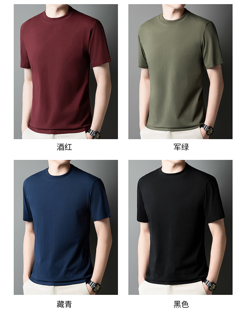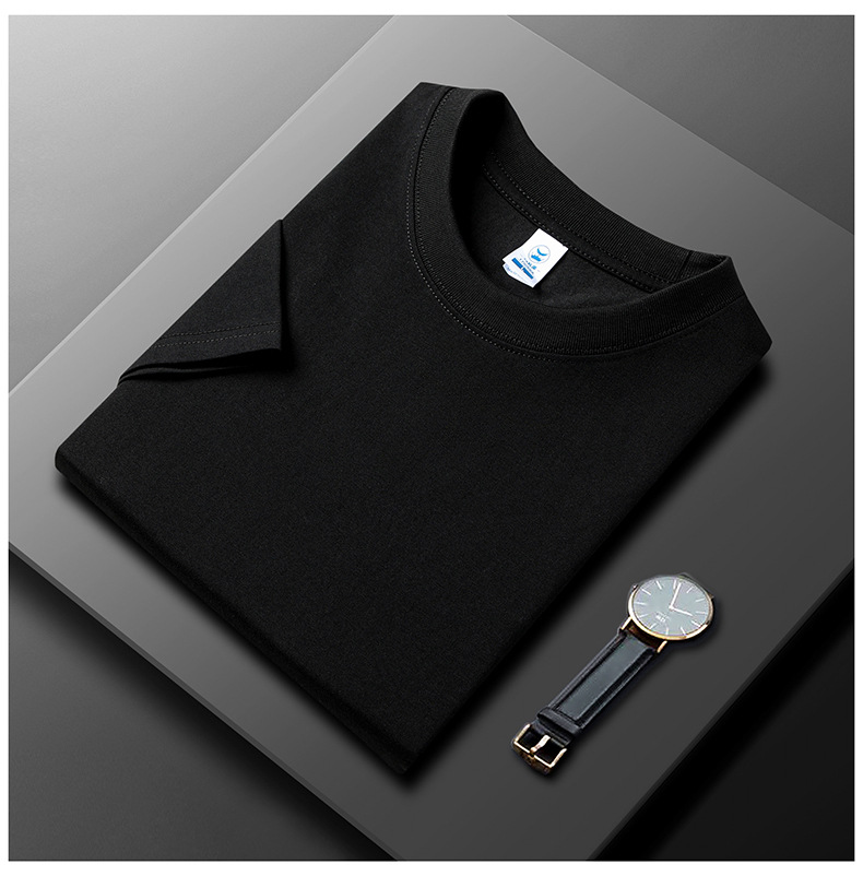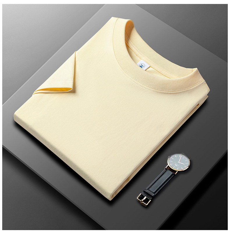 220g 헤비 코튼 티셔츠 남자 2025 년 여름 새로운 솔리드 컬러 올 매치 간단한 캐주얼 라운드 넥 남자 짧은 소매스토어 가기