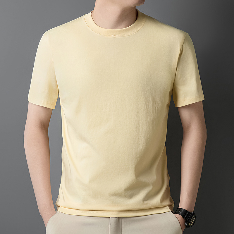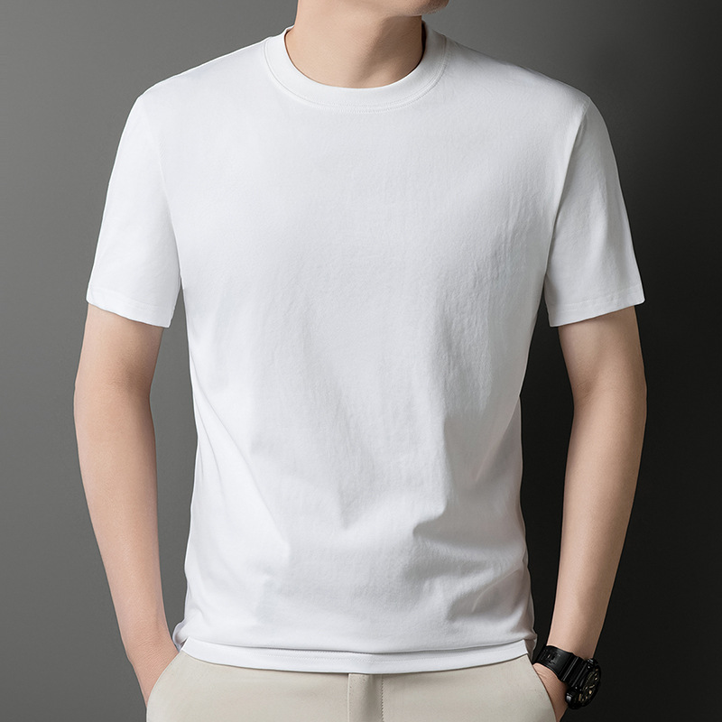 220g 헤비 코튼 티셔츠 남자 2025 년 여름 새로운 솔리드 컬러 올 매치 간단한 캐주얼 라운드 넥 남자 짧은 소매