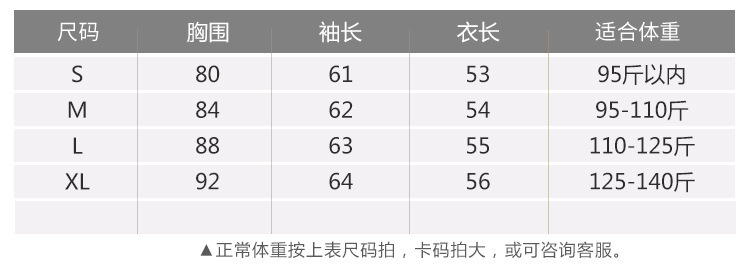 帽衫款尺码表