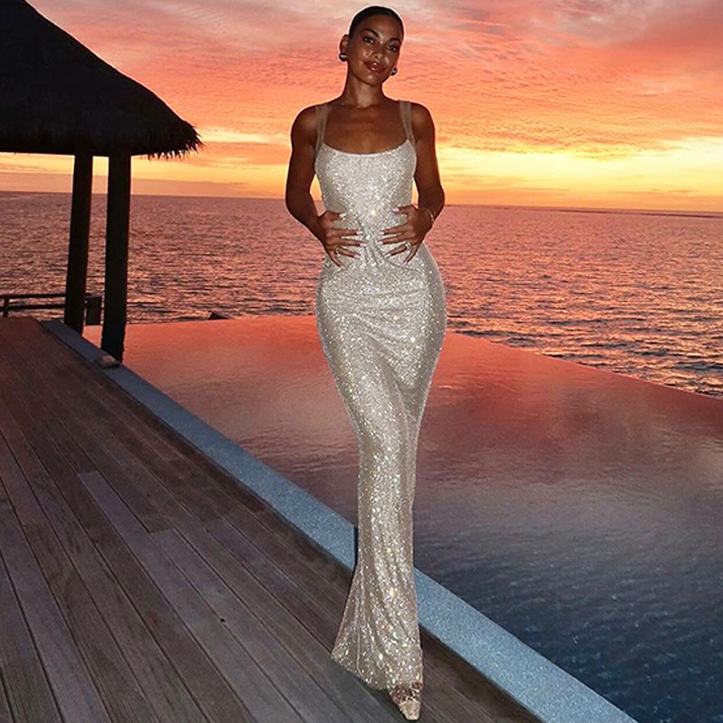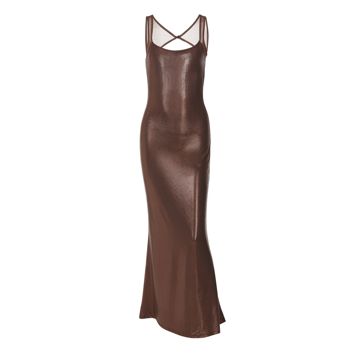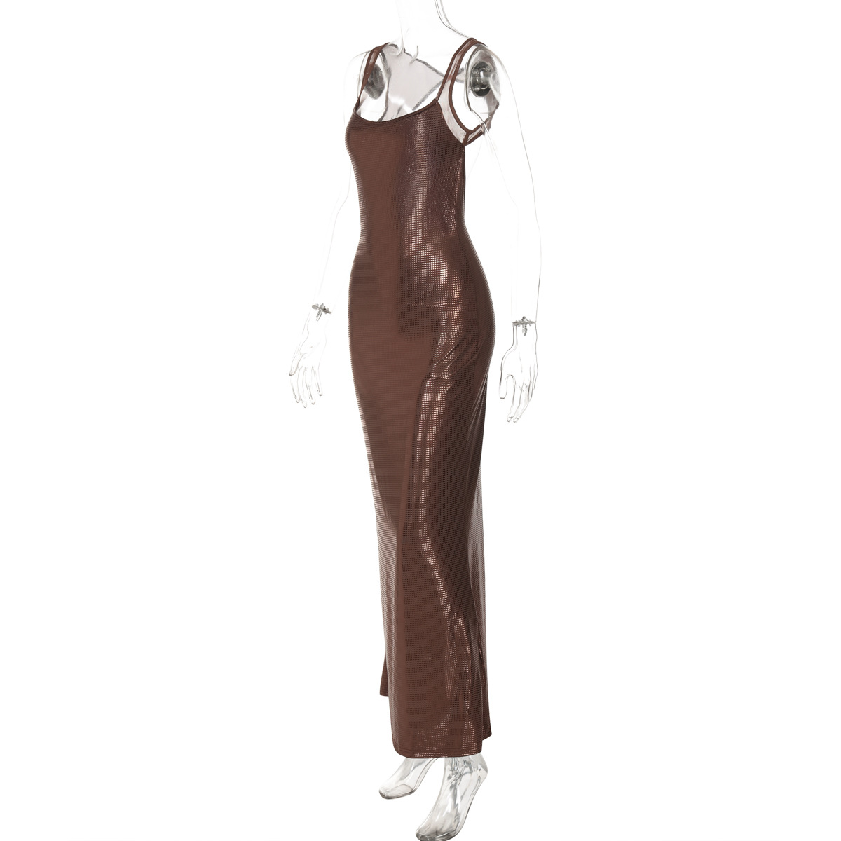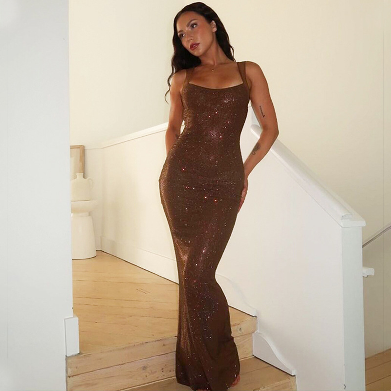 유럽과 미국 스타일 2025 여름 새로운 여성의 섹시한 백리스 메쉬 스티칭 사교계 기질 슬림 원피스 세대 헤어