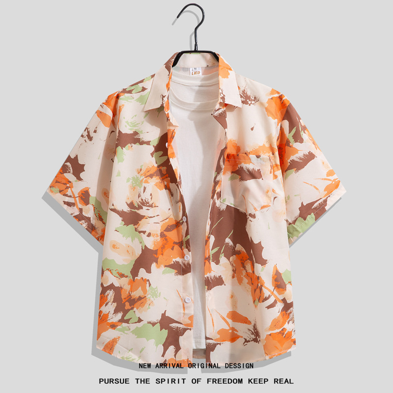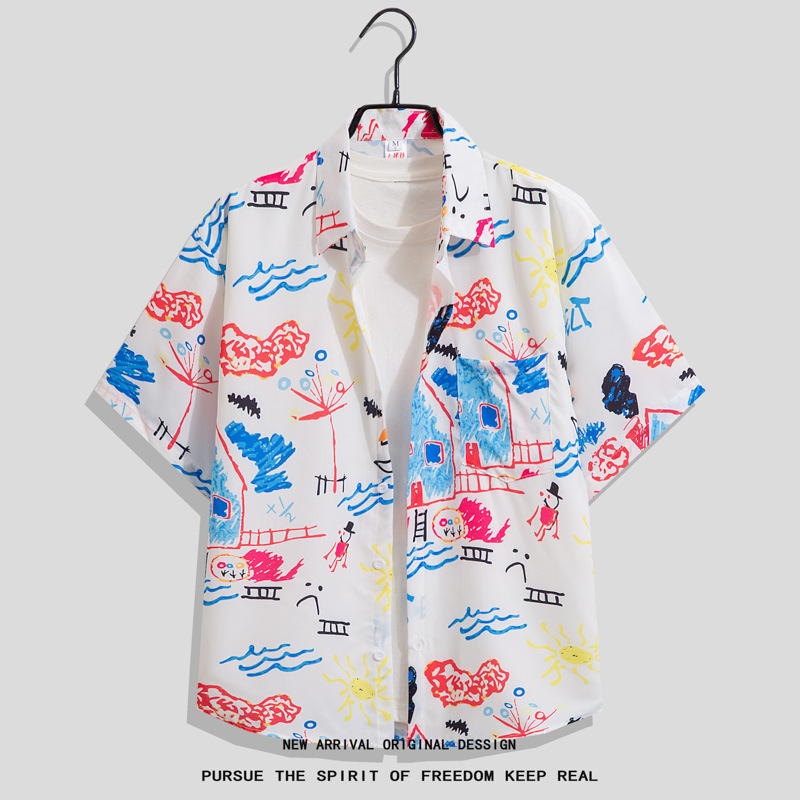 2025 레트로 셔츠 남자 여름 홍콩 스타일 학생 느슨한 틈새 디자인 센스 재미있는 새로운 남성 탑