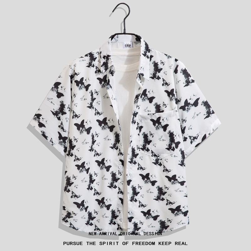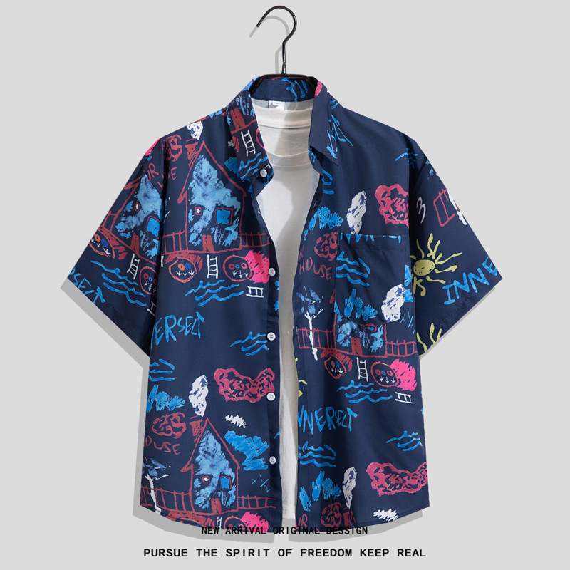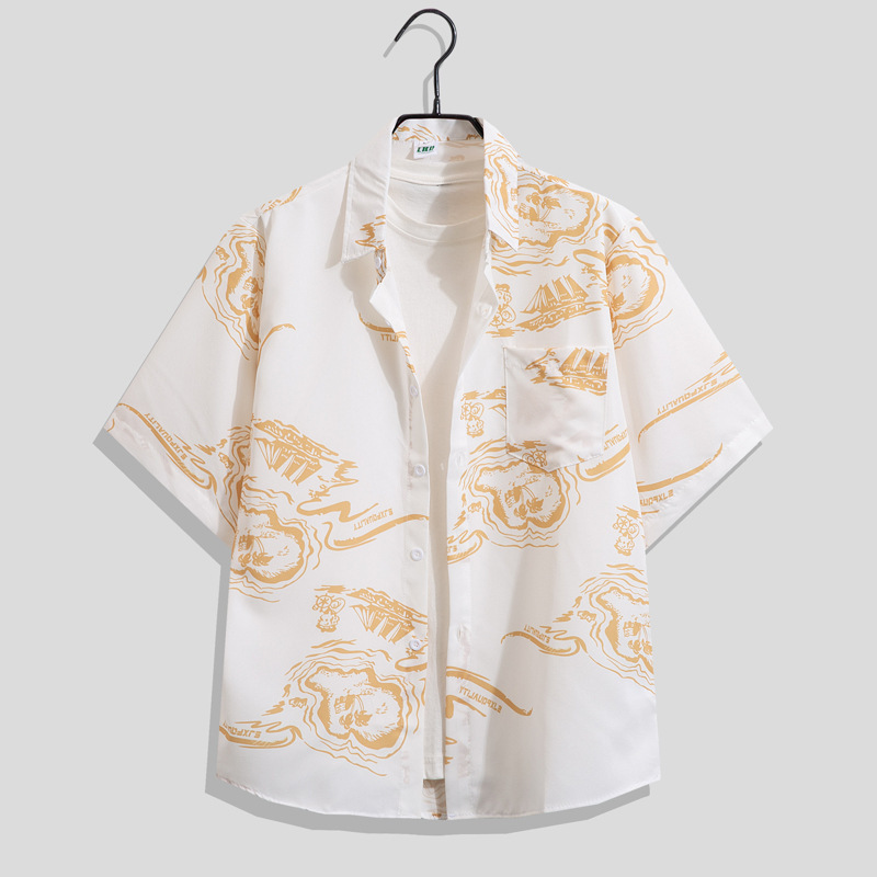 2025 레트로 셔츠 남자 여름 홍콩 스타일 학생 느슨한 틈새 디자인 센스 재미있는 새로운 남성 탑스토어 가기