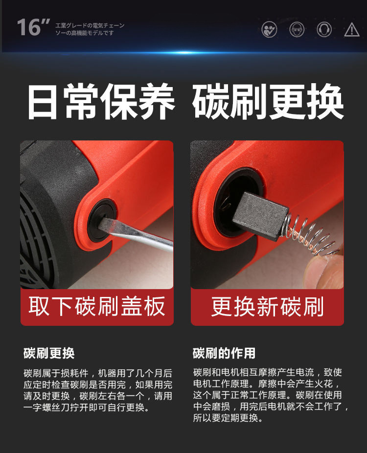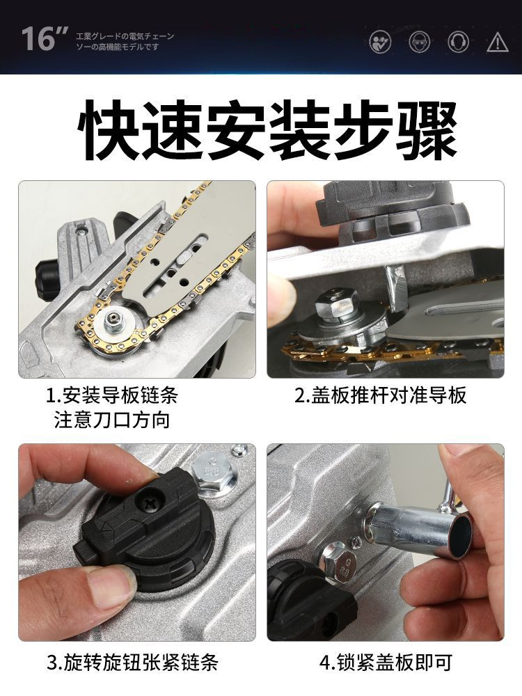 • 【 16inch 】상단 고마력 모델【 8m 라인 플러그인 모델】-금수입 체인 3개 + 두꺼운 가이드 플레이트 2개 + 고급 선물