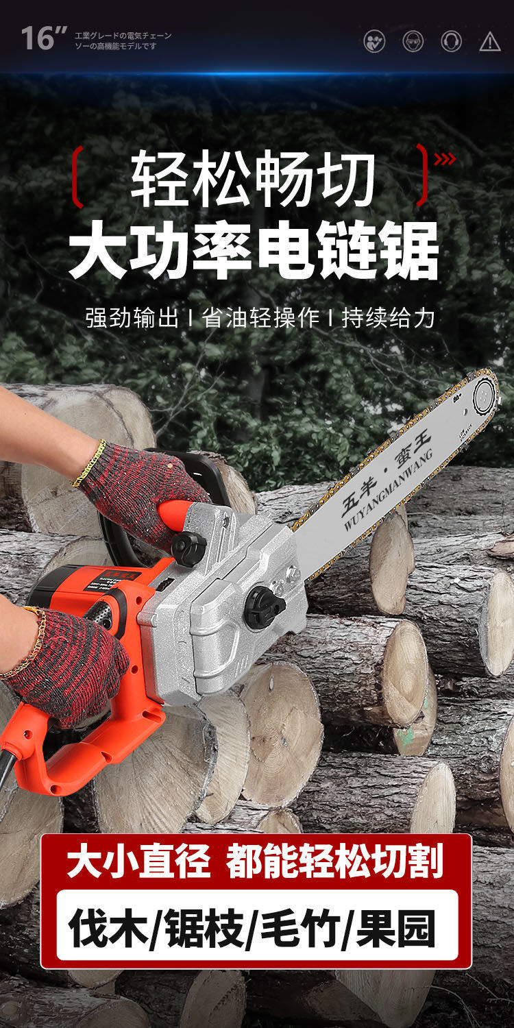 원래 수입 된 우양 고출력 전기 체인 AC 및 DC 이중 목적 전기 톱 절단스토어 가기