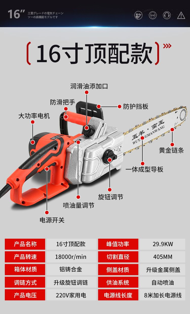 • 【16inch】상단 고마력 모델【8m선 플러그인 모델】-금수입 체인 1개 + 두꺼운 가이드 플레이트 1개 + 고급 선물