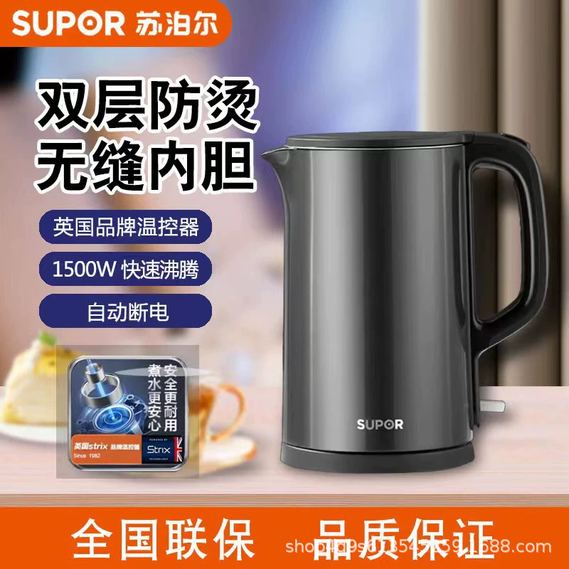 SW-15J626 전기 주전자 1.5L 가구 304 스테인리스 주전자 두 배 층 단열 선물
