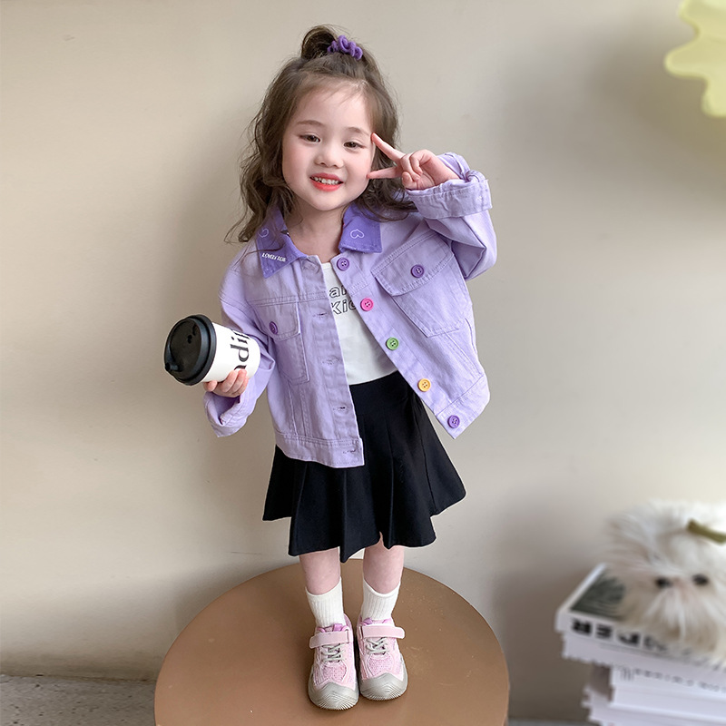 여자 데님 코트 2025 새로운 서양식 한국 컬러 버클 아기 소녀의 봄 착용 어린이 봄과 가을 재킷 탑스토어 가기