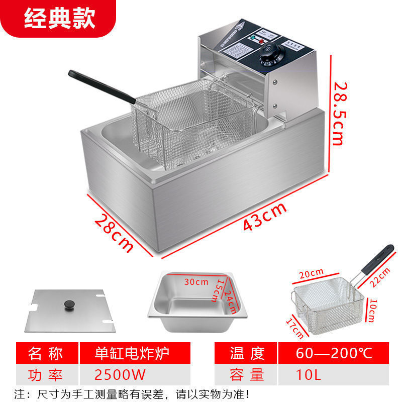 • 블랙 스틸 두꺼운 모델 - 10리터 단일 실린더 전기 프라이어 + 커버