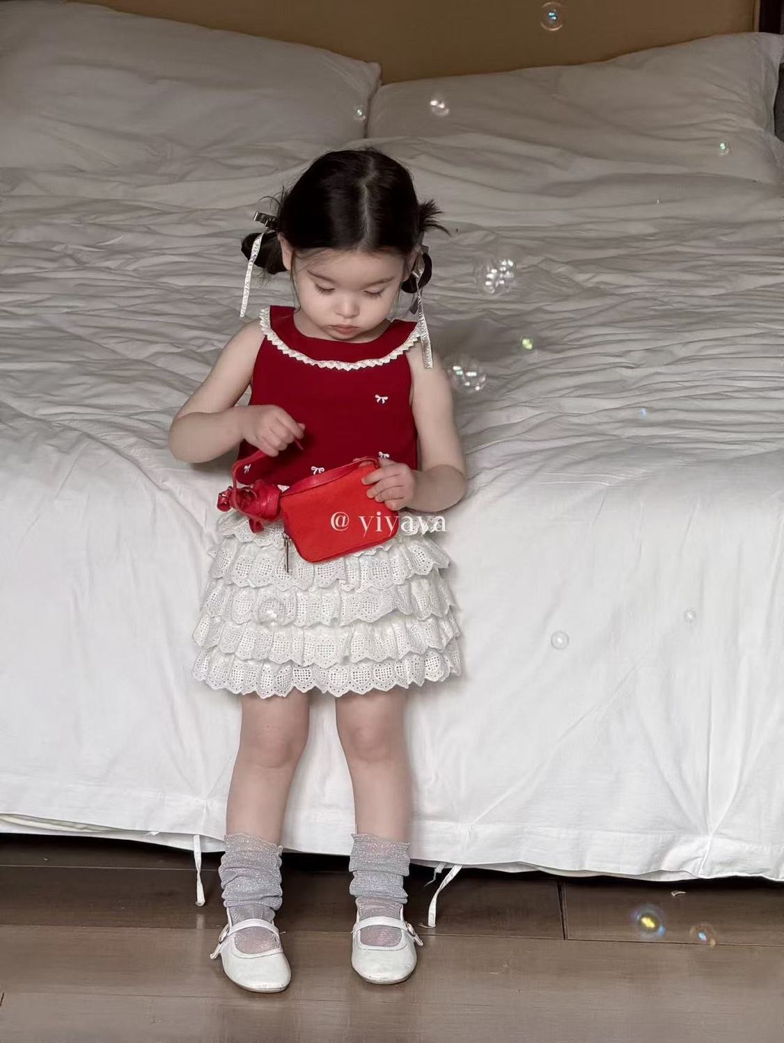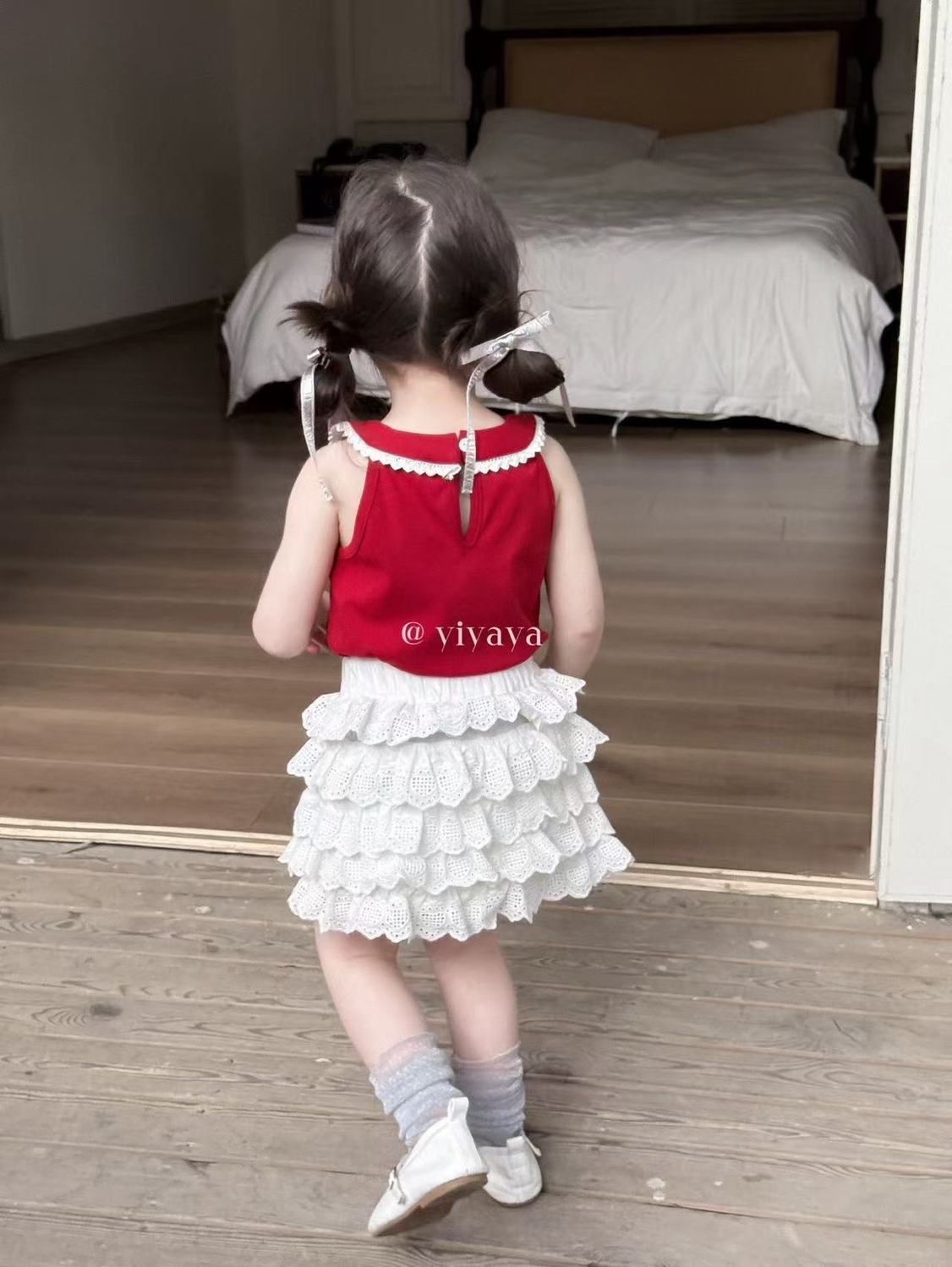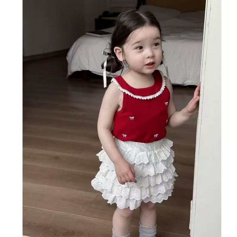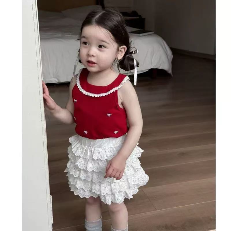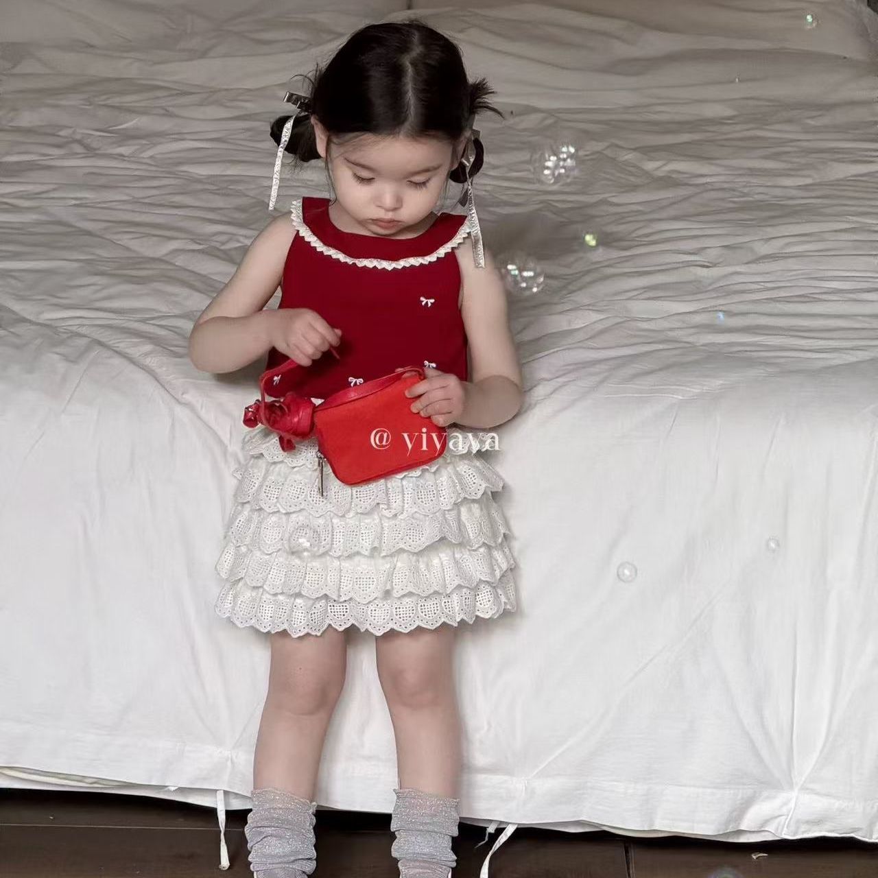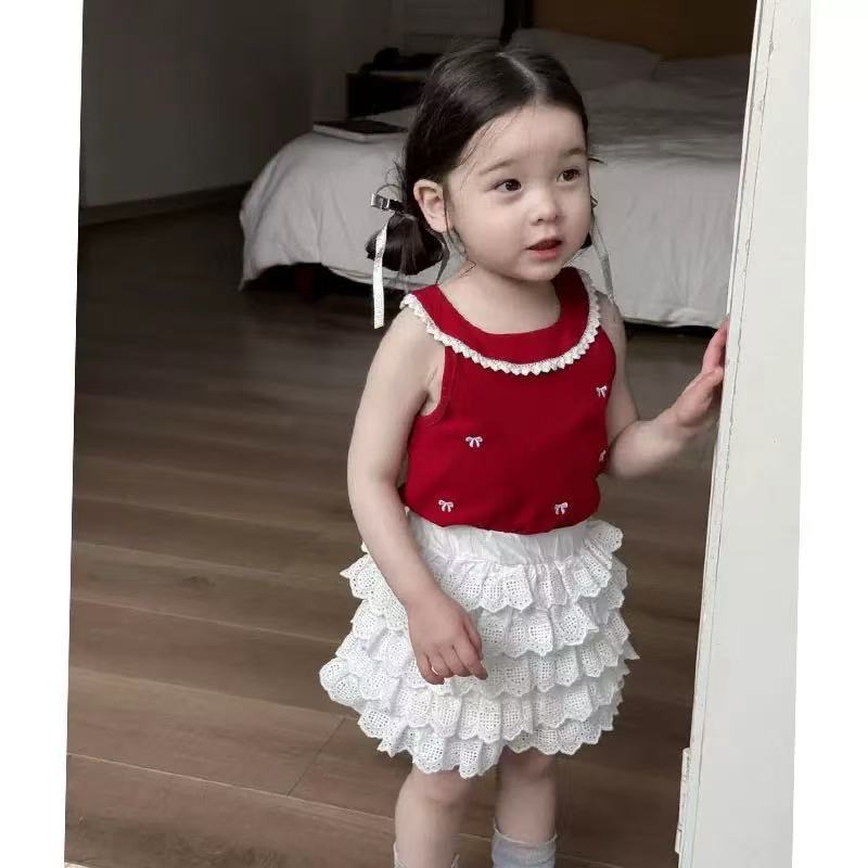 소녀 조끼 한국 스타일 세트 2025 서양식 여름 새로운 공주 스타일 달콤한 활 어린이 투피스 세트