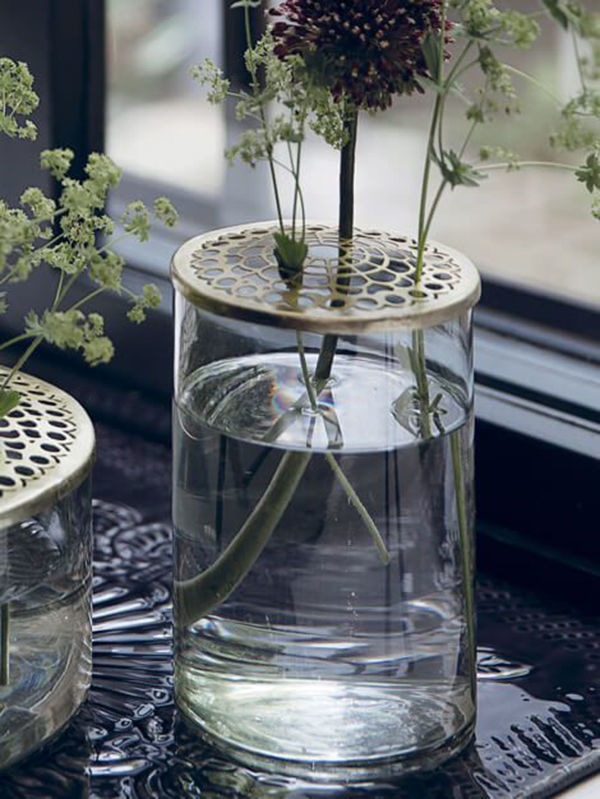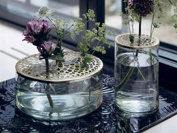 꽃병 꽃꽂이 그물 붉은 금속 구조 물을 기르는 투명 유리 꽃병 가정 장식 거실