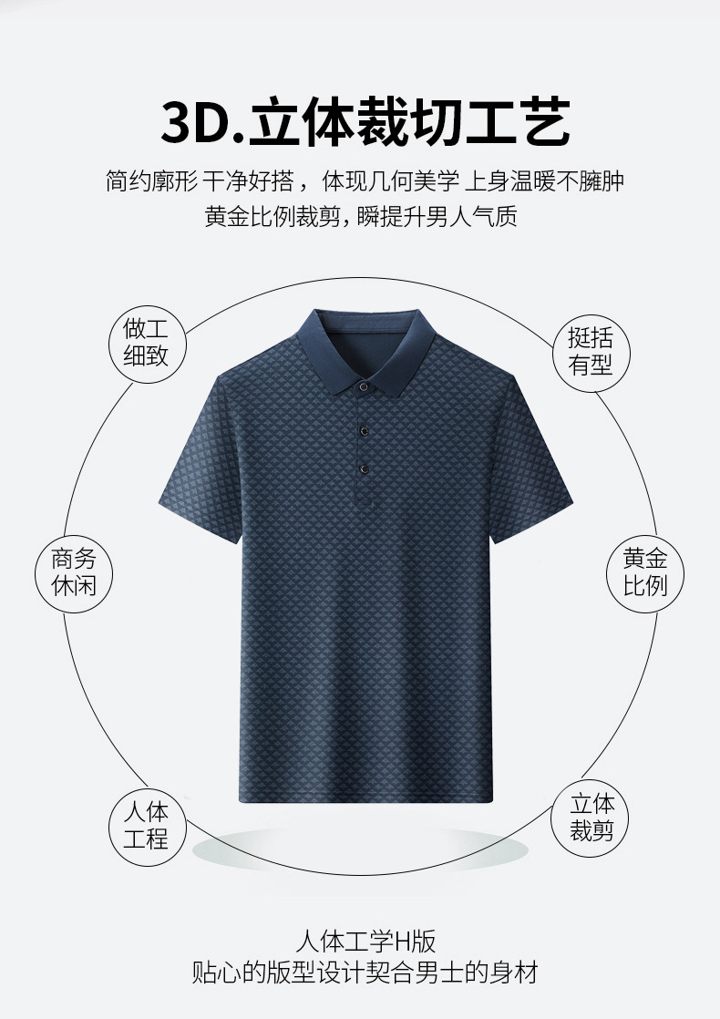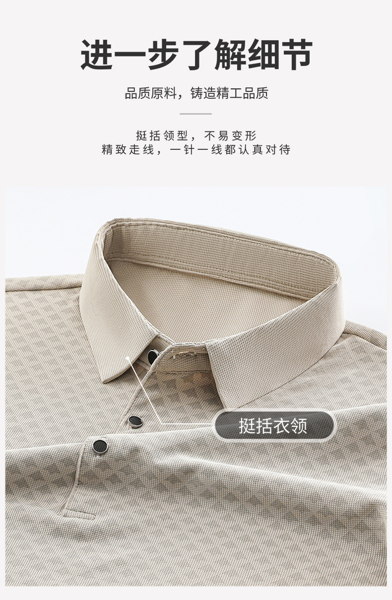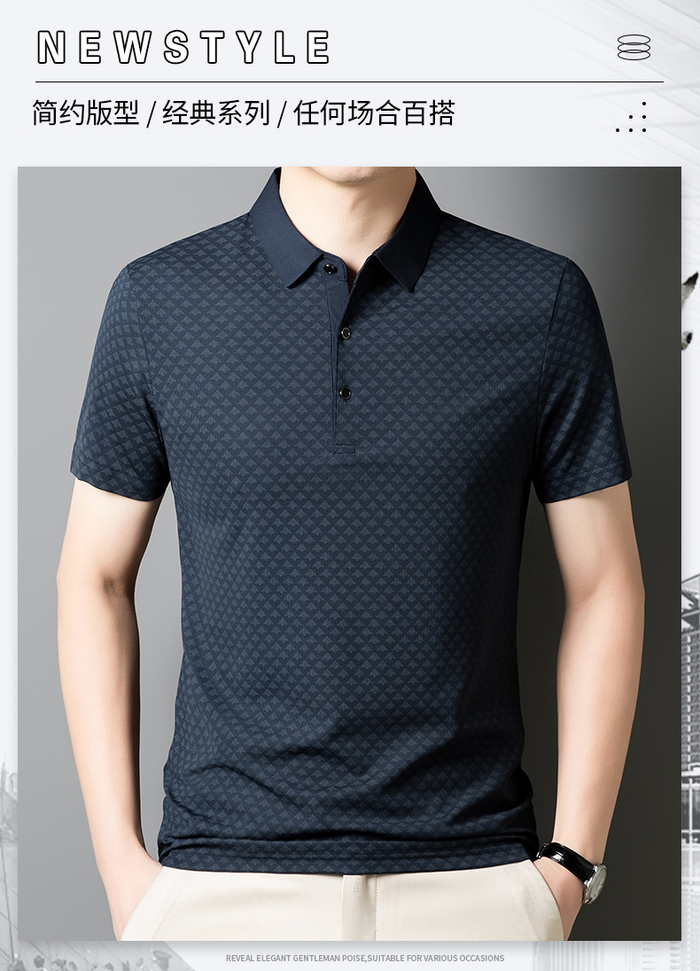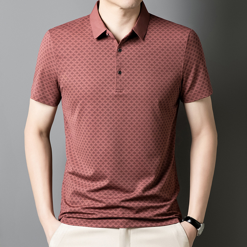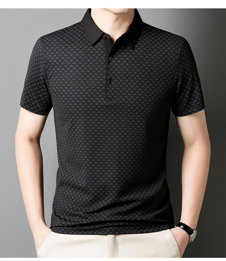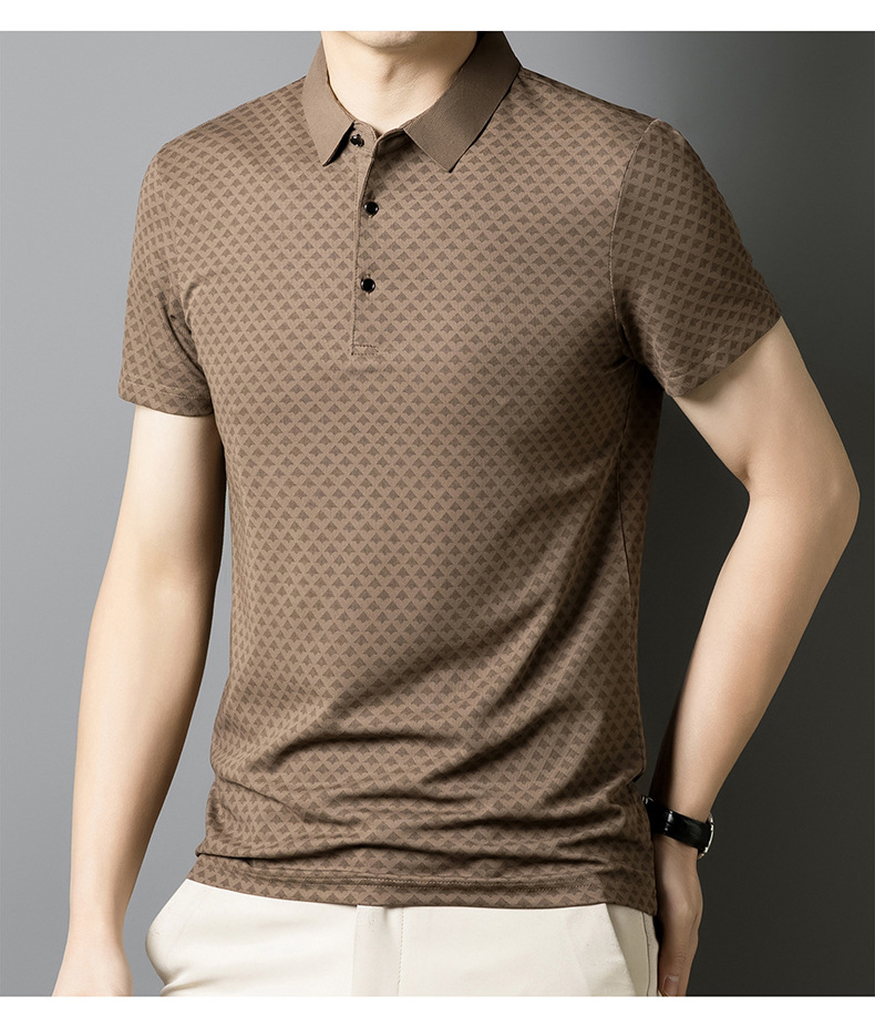 격자 무늬 아이스 실크 남성용 폴로 셔츠 반팔 2025 여름 새로운 도착 중년 아빠의 프린트 랩 티셔츠 남성용
