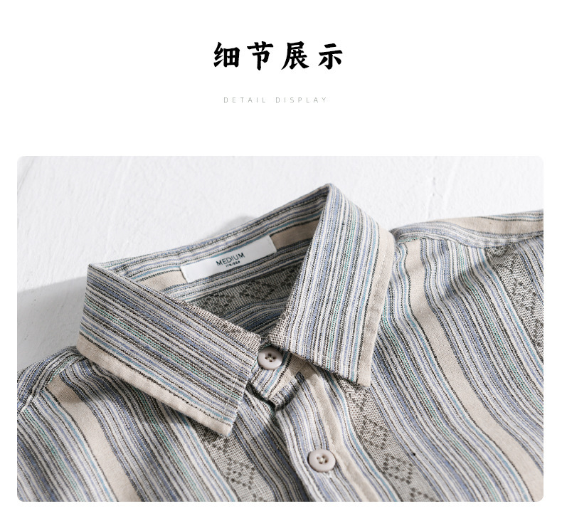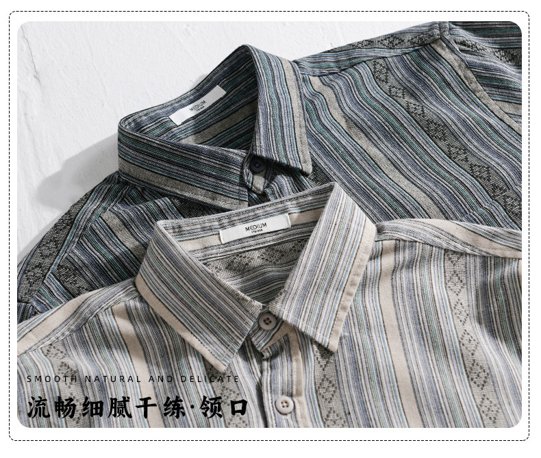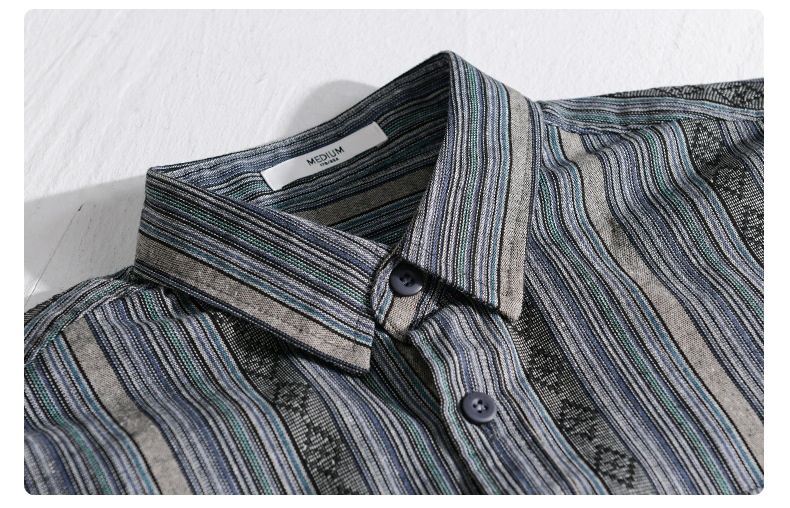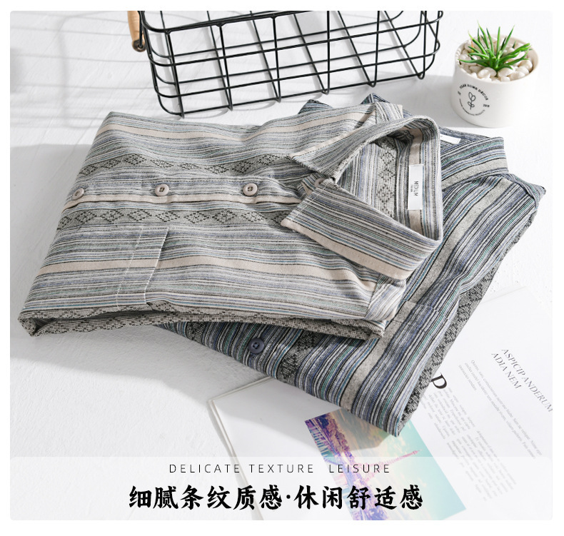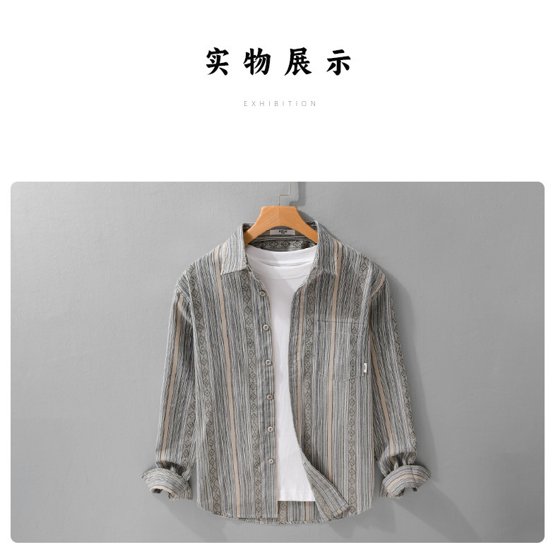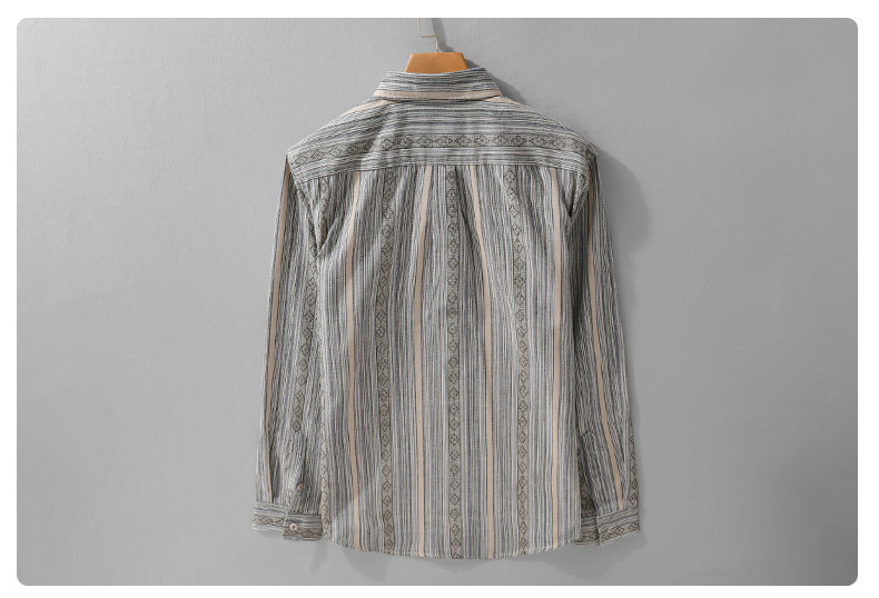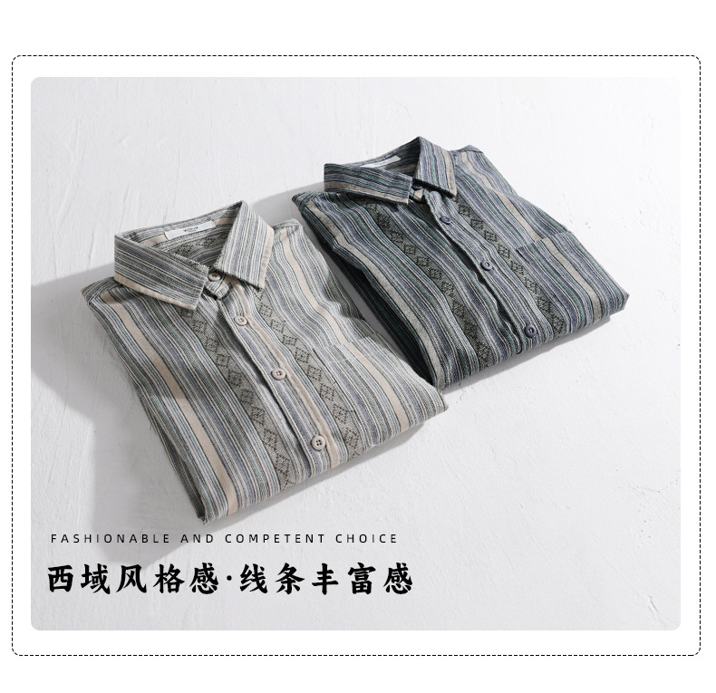 봄 남성복 복고풍 줄무늬 민족 스타일 줄무늬 셔츠 캐주얼 작업복 편안한 긴팔 셔츠 6159스토어 가기