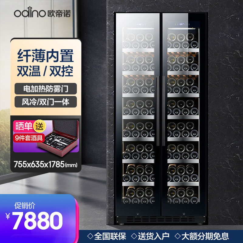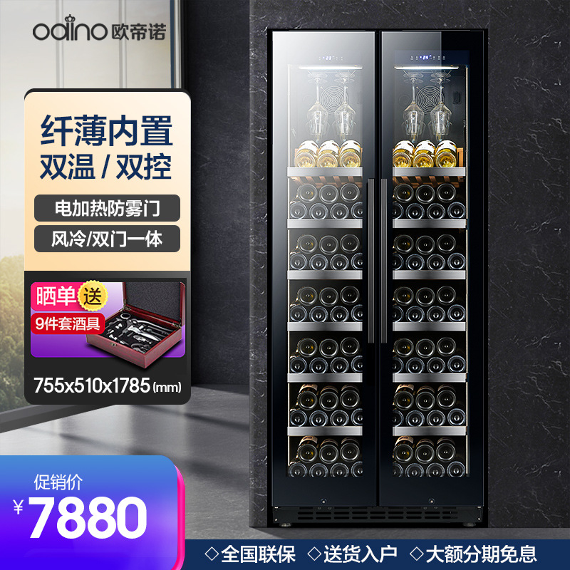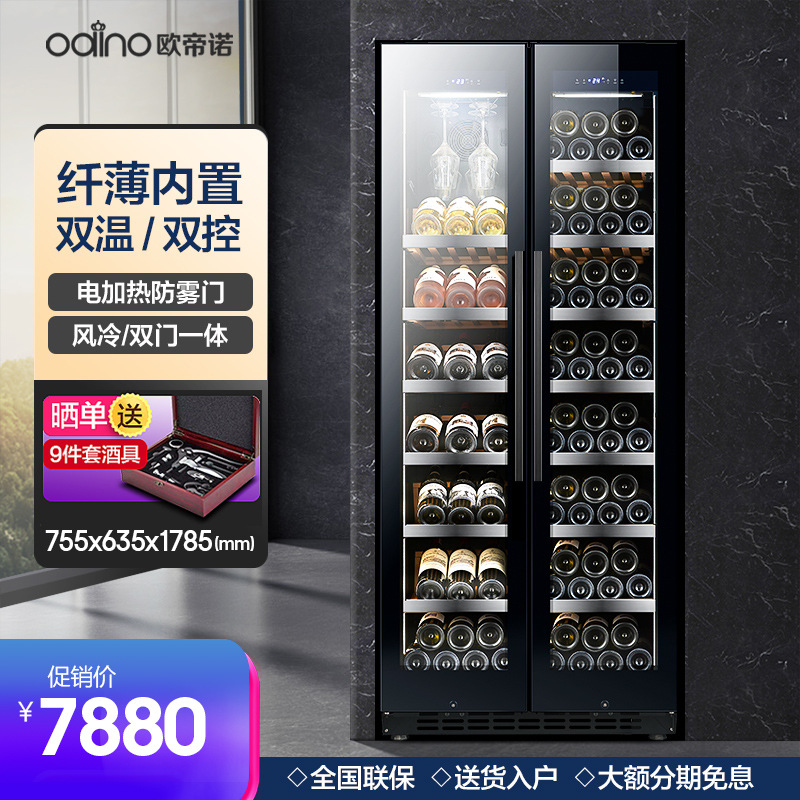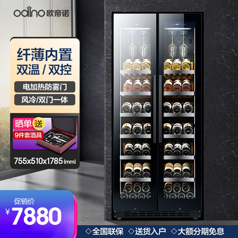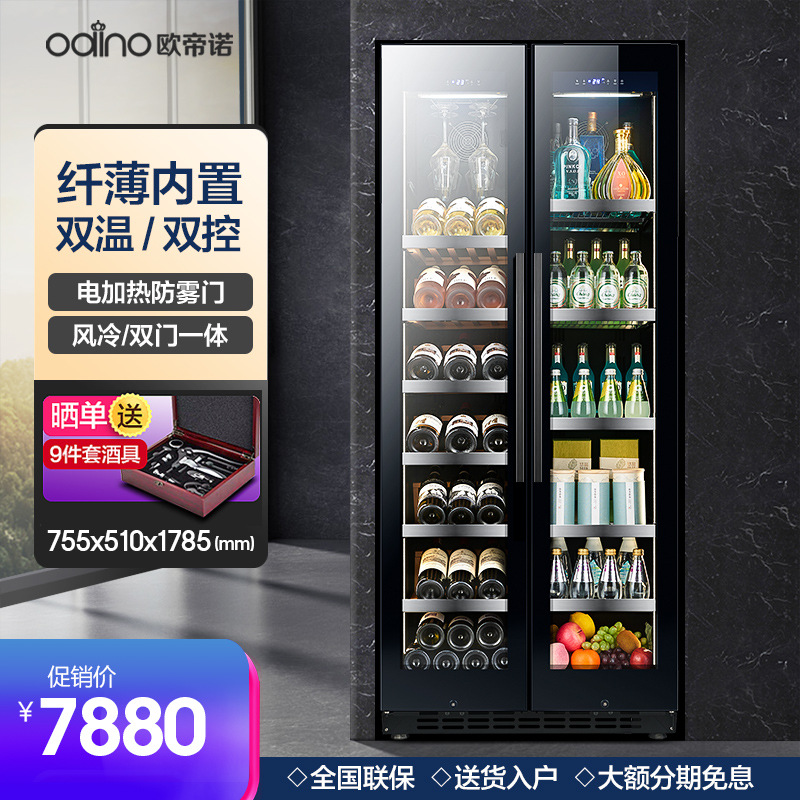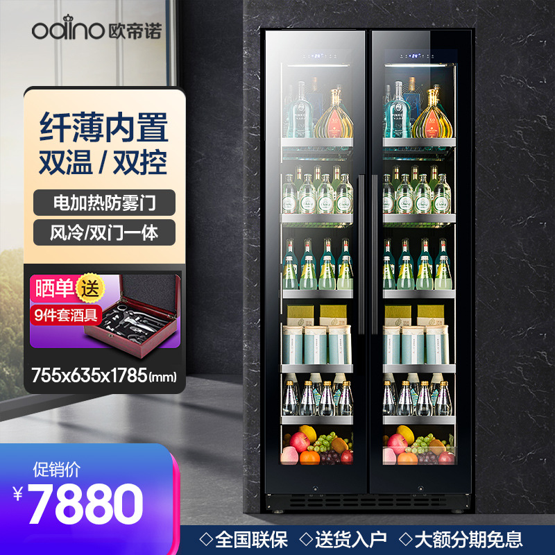 오디노 더블 도어 통합 아이스 바 와인 캐비닛 일정한 온도 레드 와인 캐비닛 가정용 거실 공랭식 차 냉장고 냉장고스토어 가기
