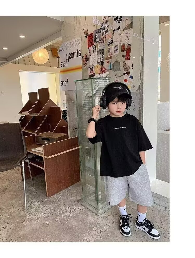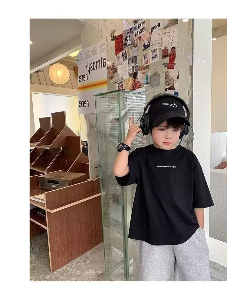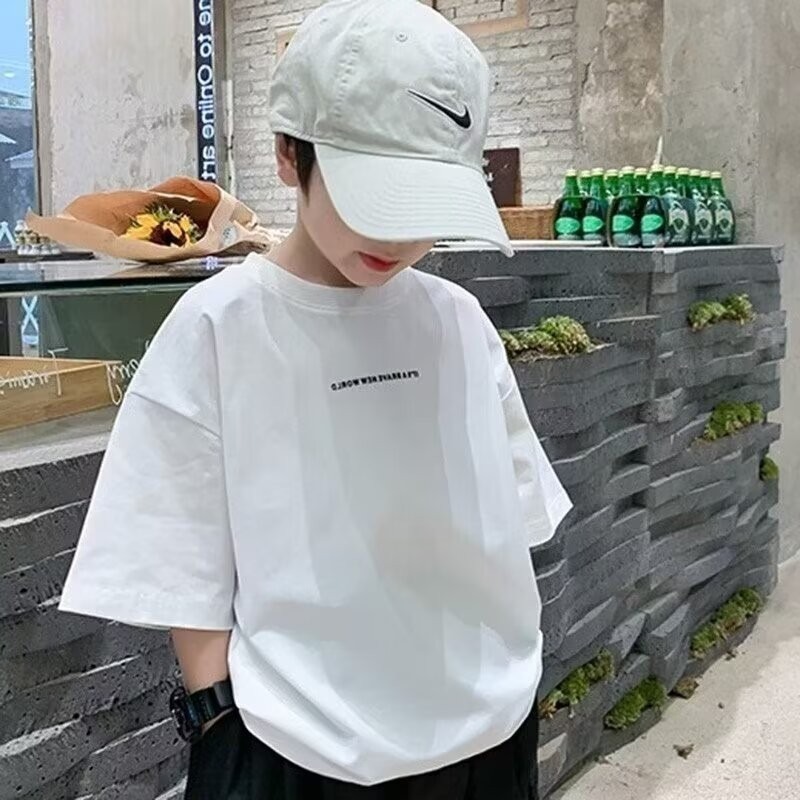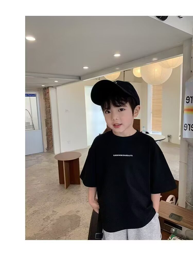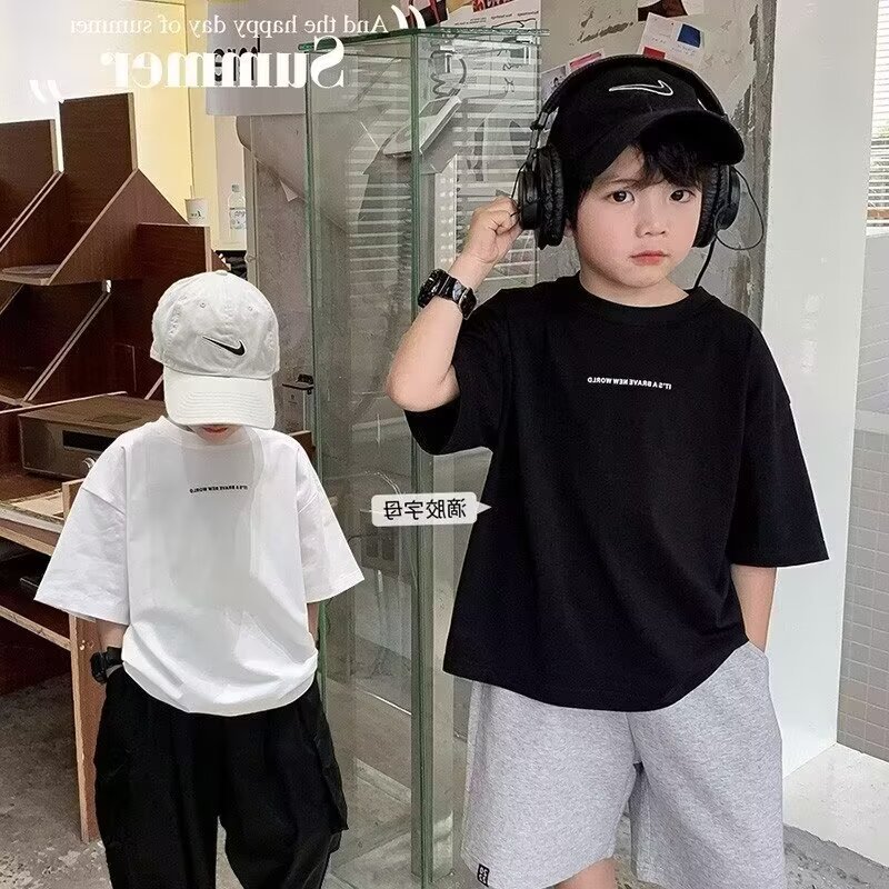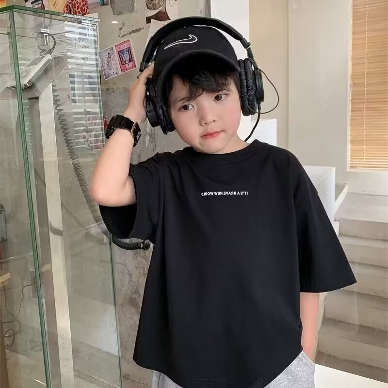 남학생 반팔 티셔츠 2025 여름 중대형 아동용 트렌디 브랜드 아동복 서양식 여름착용 느슨한 티셔츠 남성용 아동용 탑스토어 가기