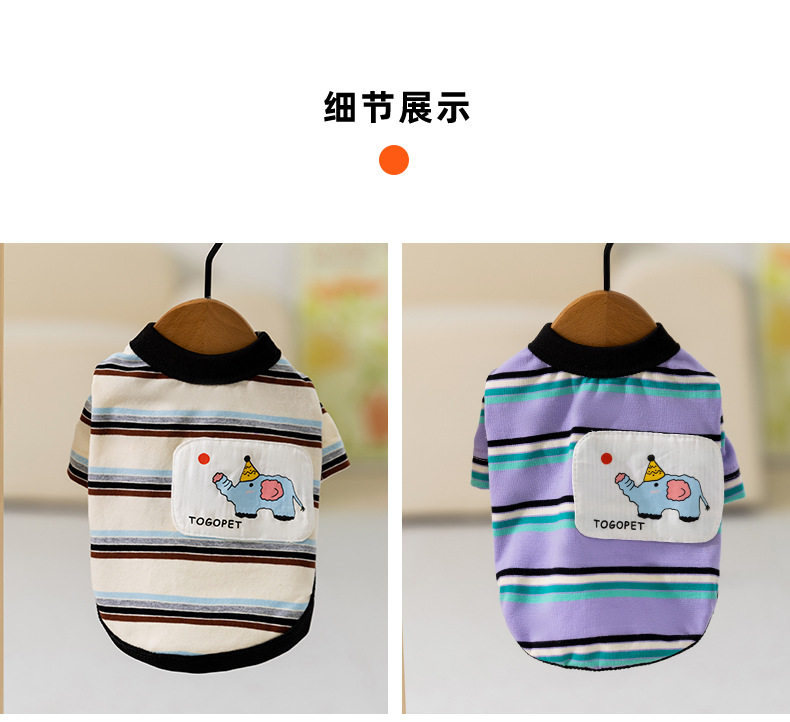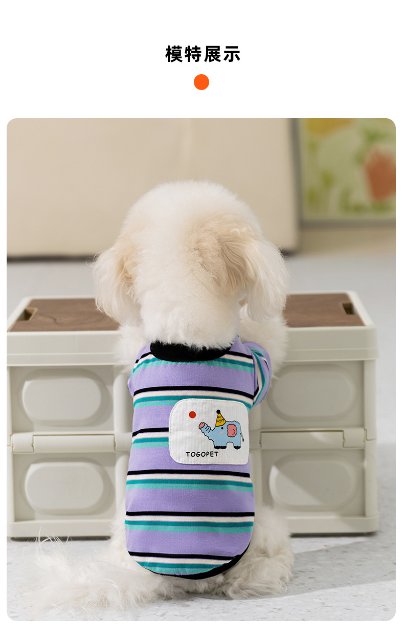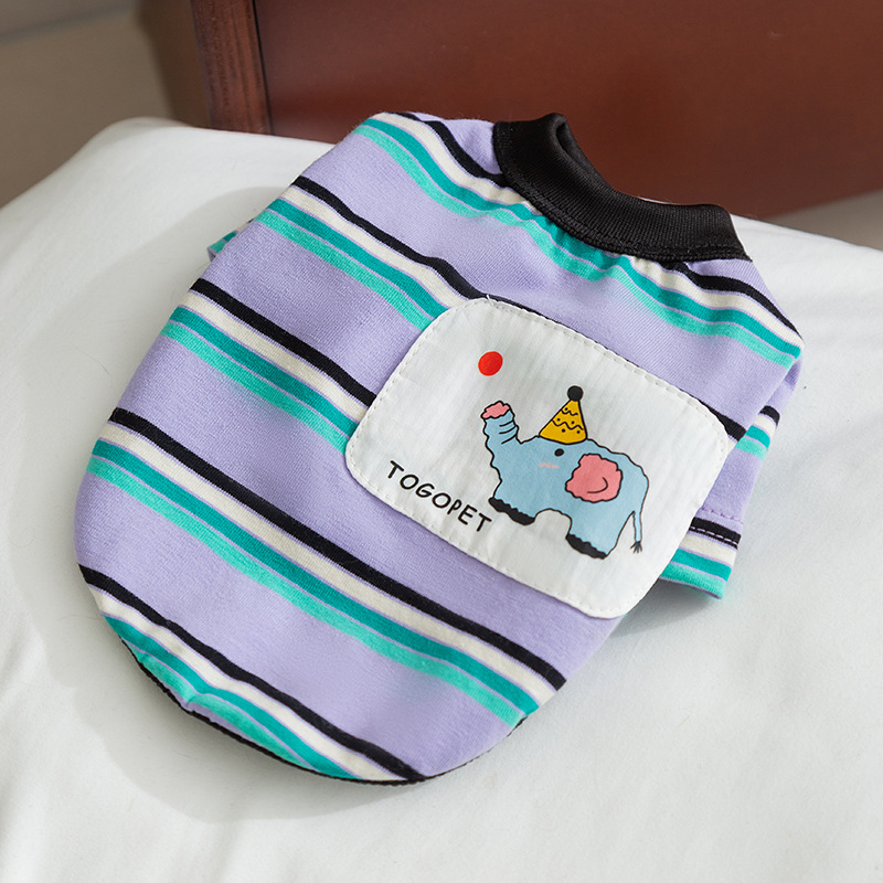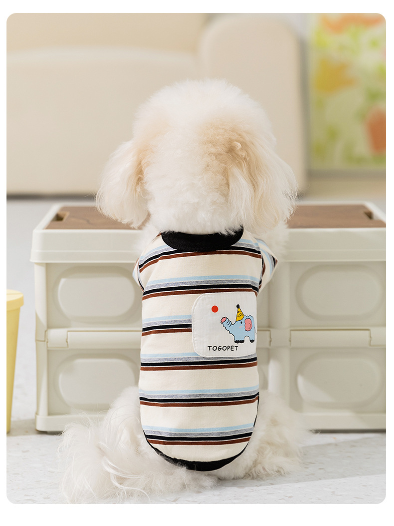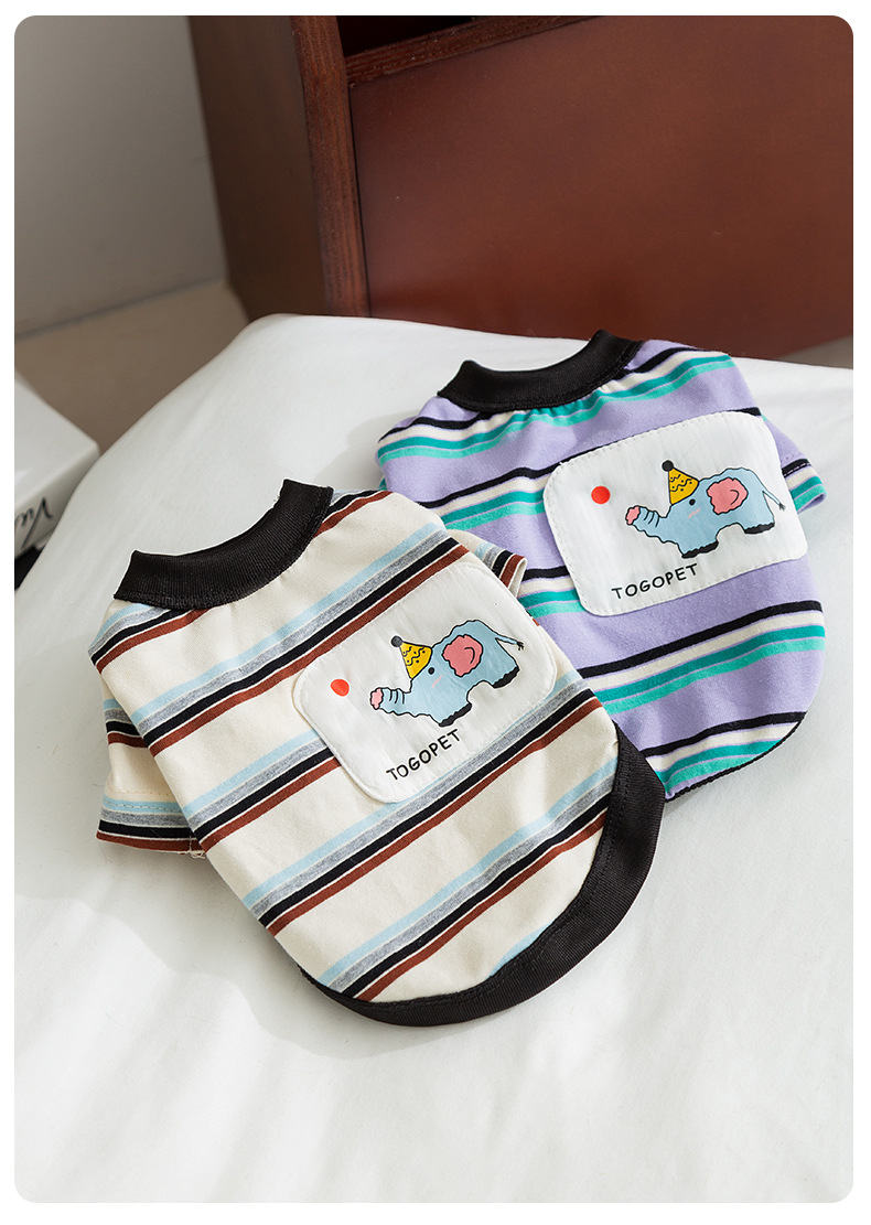 봄과 여름 개 얇은 조끼 줄무늬 만화 아기 코끼리 두 다리 티셔츠 중간 및 작은 개 고양이 애완 동물 개 옷