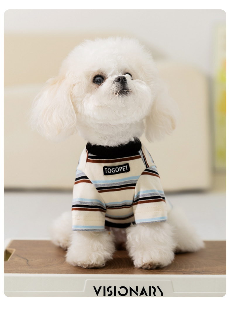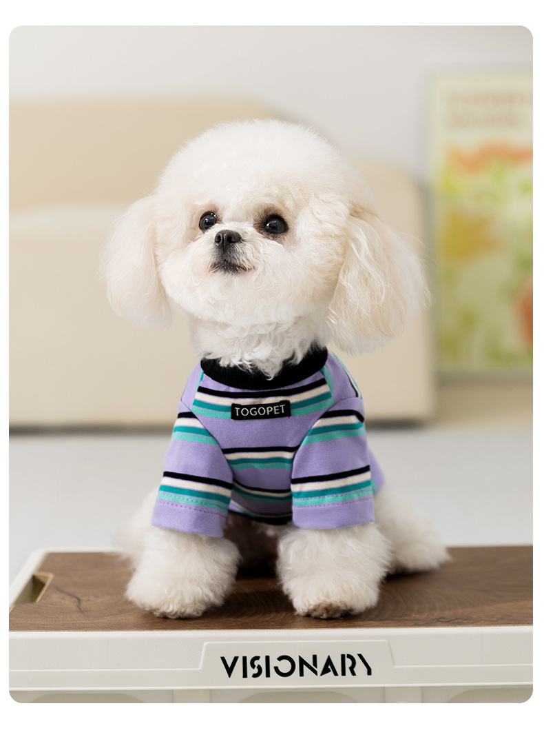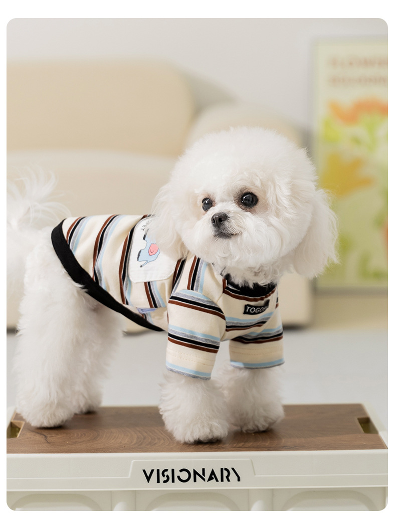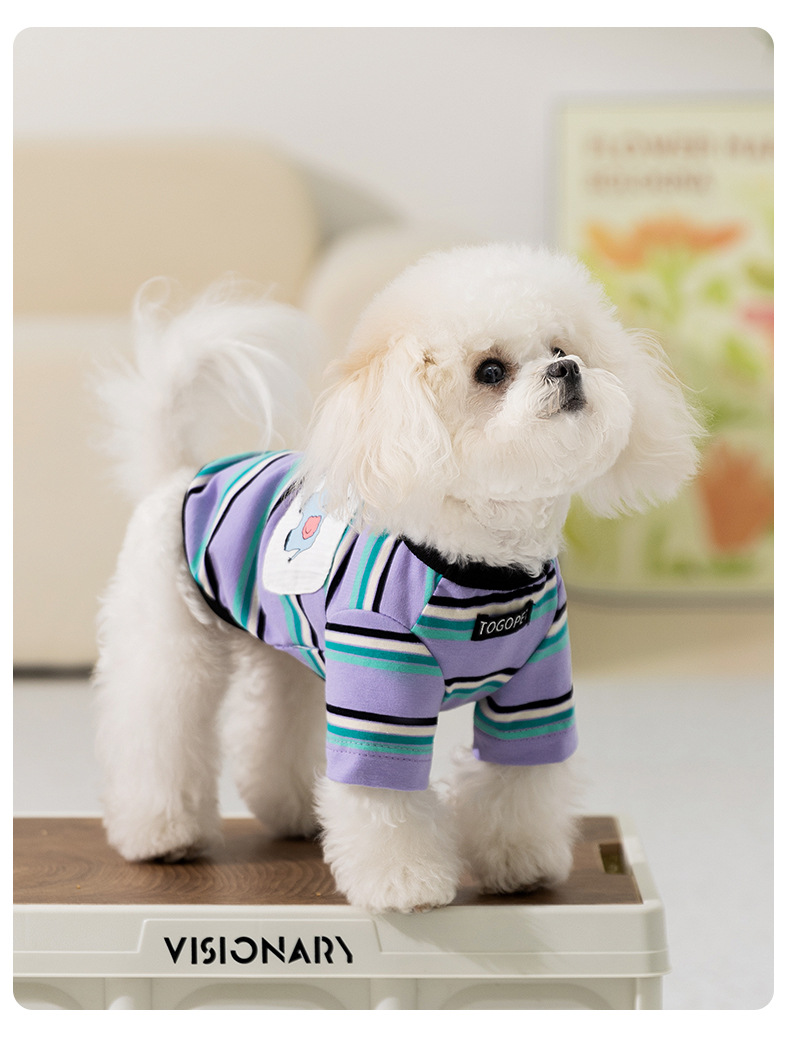 봄과 여름 개 얇은 조끼 줄무늬 만화 아기 코끼리 두 다리 티셔츠 중간 및 작은 개 고양이 애완 동물 개 옷