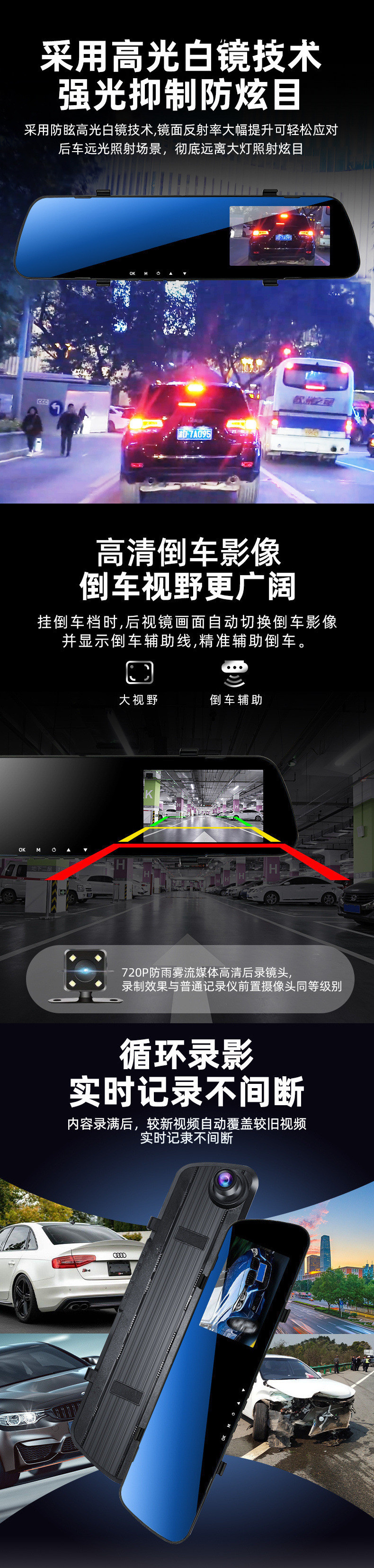 고화질 전면 및 후면 듀얼 렌즈 자동차 기반 무선 구동 기기 레코더 반전 이미지 나이트 비전 24H 주차 모니터링