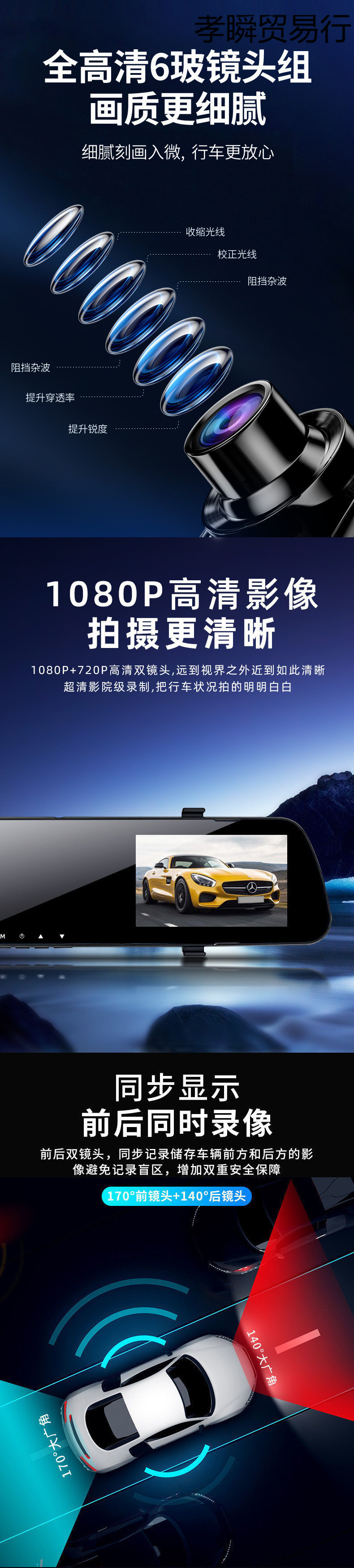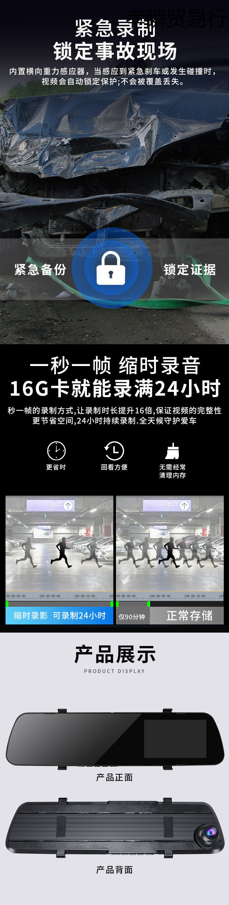 고화질 전면 및 후면 듀얼 렌즈 자동차 기반 무선 구동 기기 레코더 반전 이미지 나이트 비전 24H 주차 모니터링스토어 가기