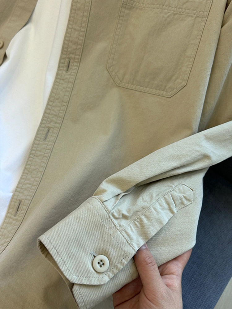 카키 긴 소매 셔츠 남자의 봄과 가을 착용 일본 복고풍 도시 소년 작업복 셔츠 캐주얼 자켓