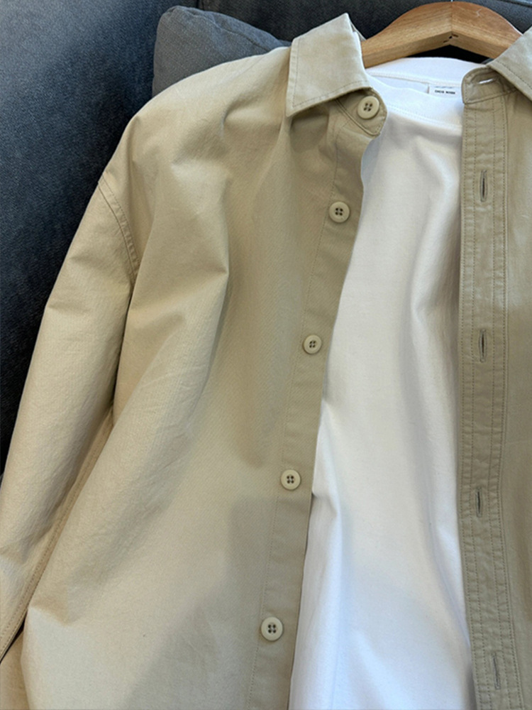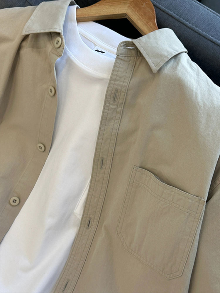 카키 긴 소매 셔츠 남자의 봄과 가을 착용 일본 복고풍 도시 소년 작업복 셔츠 캐주얼 자켓스토어 가기