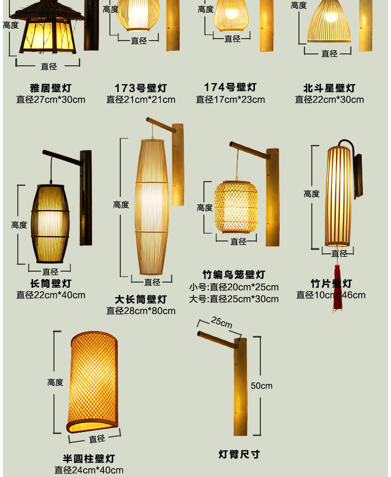 • 대나무 랜턴 벽 램프 (25*40CM)