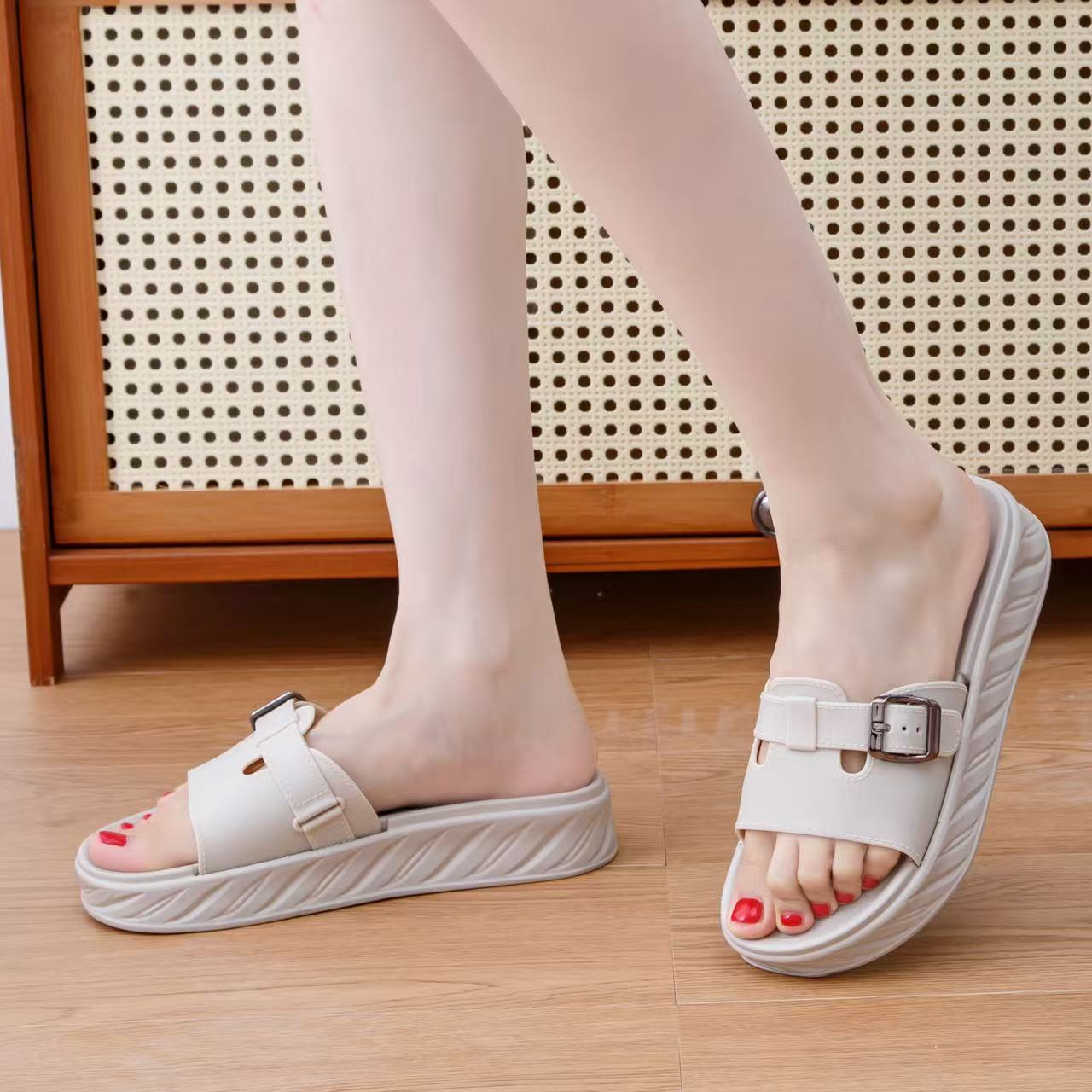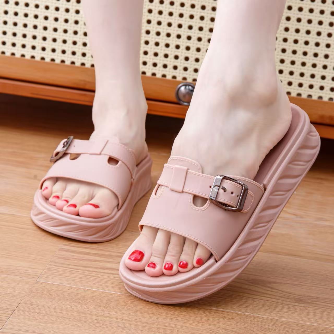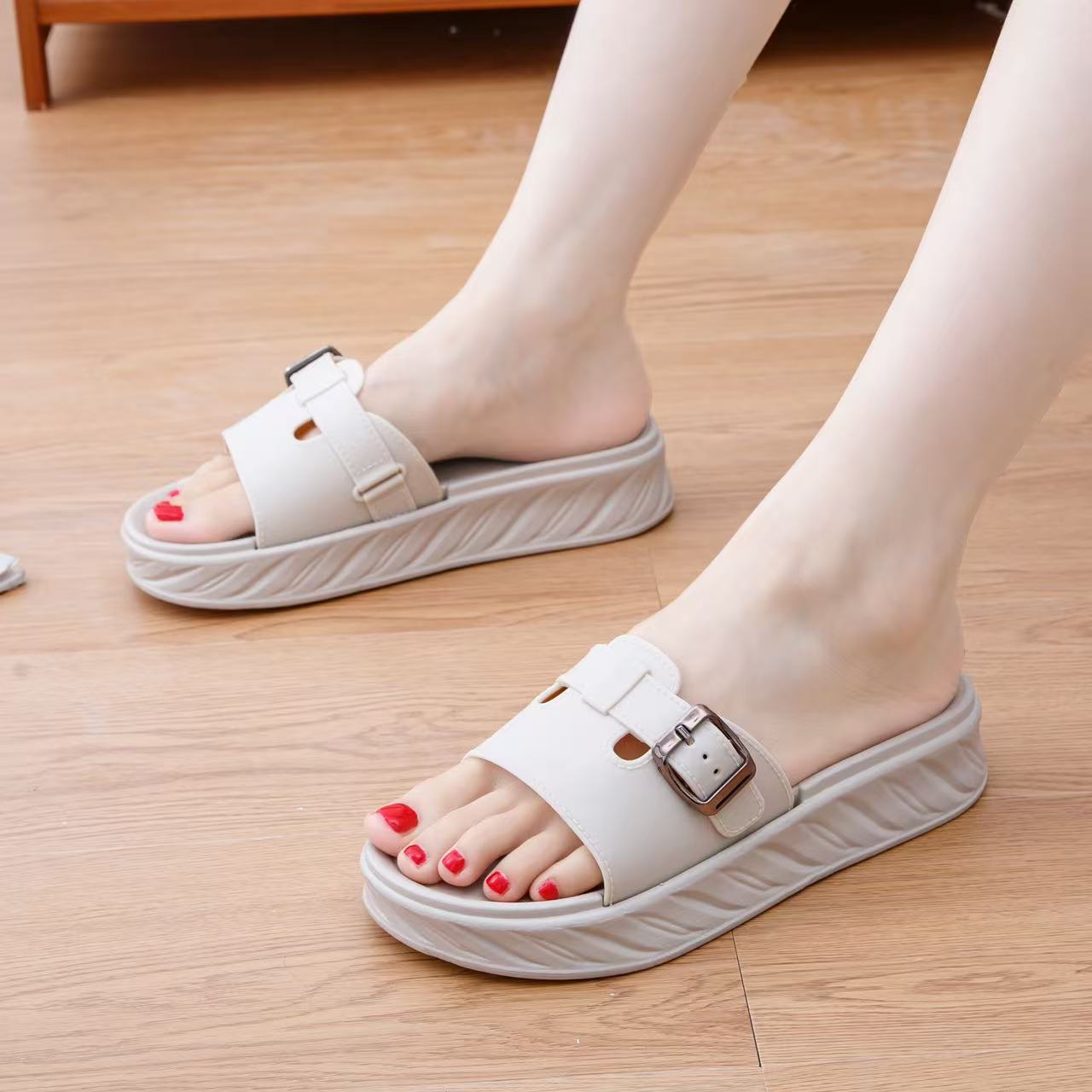 유럽 역 슬리퍼 여성 2024 년 여름 새로운 하이힐 굵은 뒤꿈치 머핀 두꺼운 바닥 의상 로마 샌들 슬리퍼 여성용 신발스토어 가기