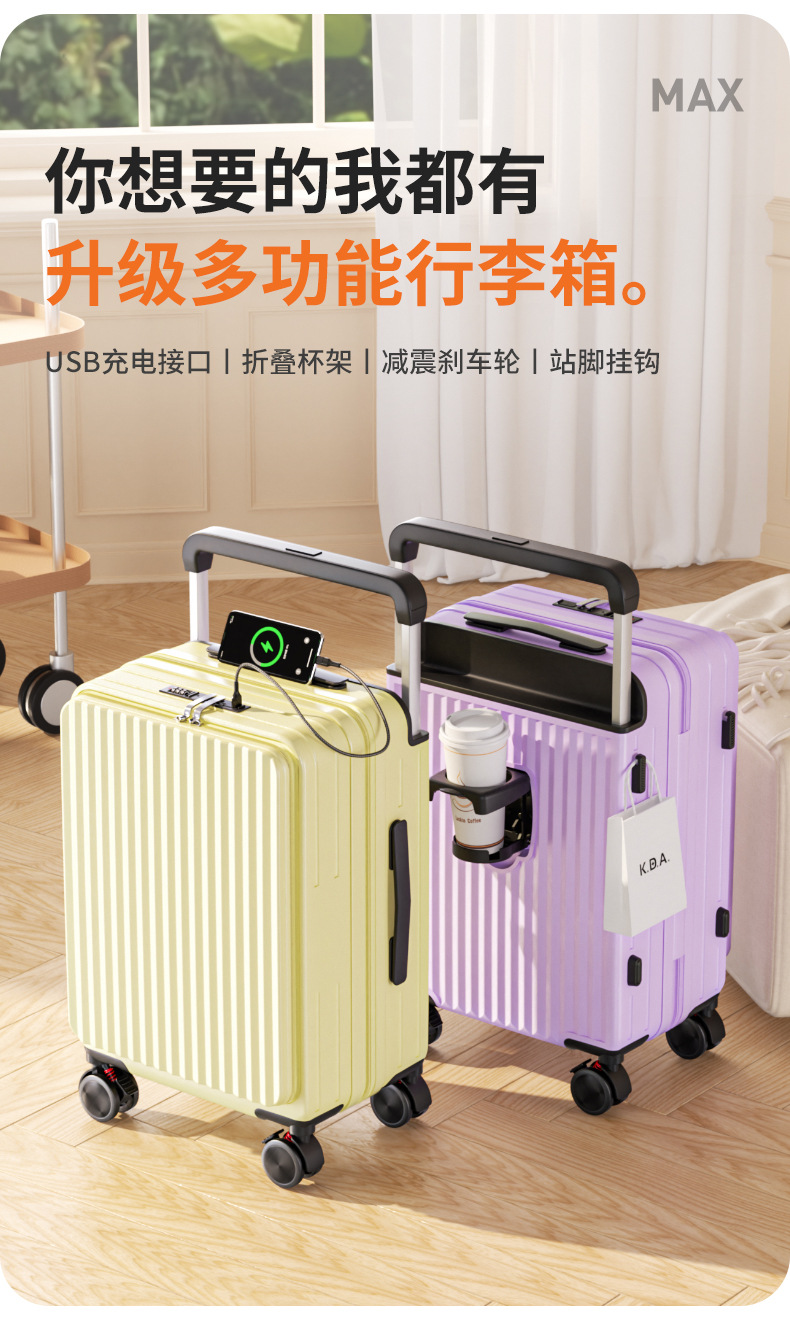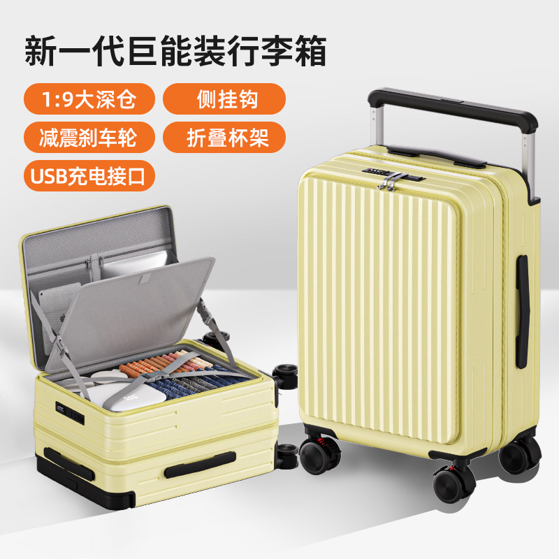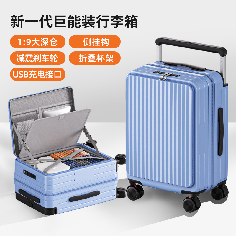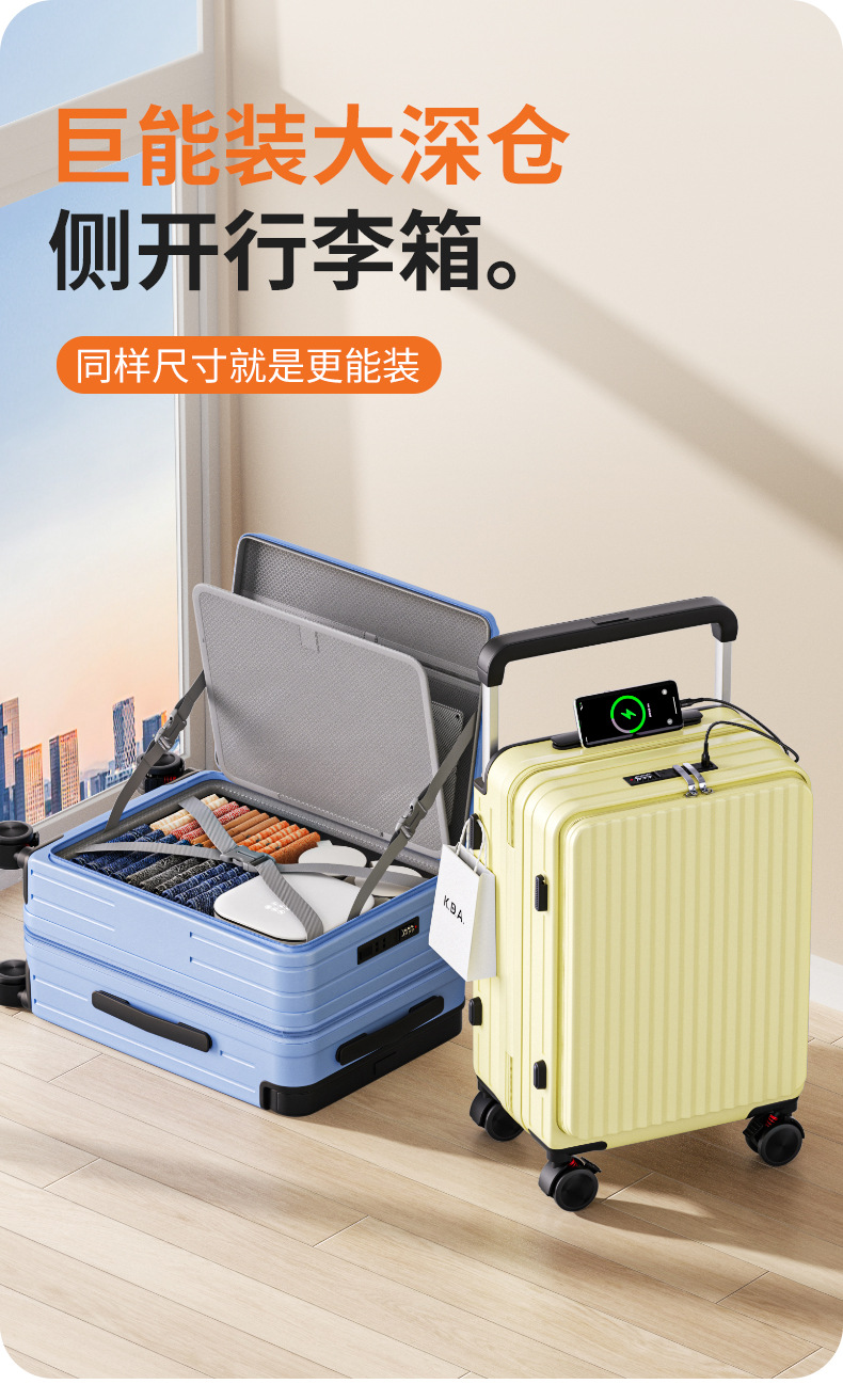 사이드 오프닝 수하물 케이스 여성의 20 인치 다기능 트롤리 케이스 딥 창고 대용량 24 인치 소음기 가방 남성스토어 가기