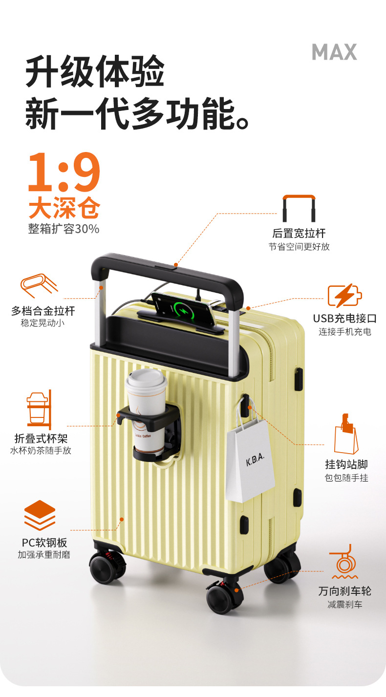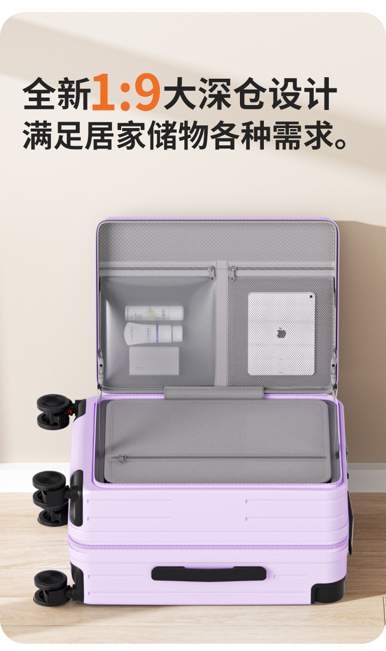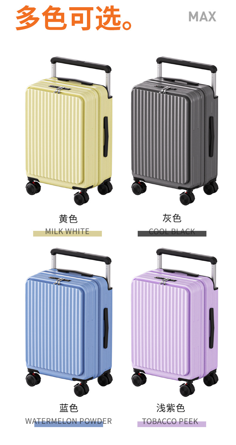 사이드 오프닝 수하물 케이스 여성의 20 인치 다기능 트롤리 케이스 딥 창고 대용량 24 인치 소음기 가방 남성스토어 가기