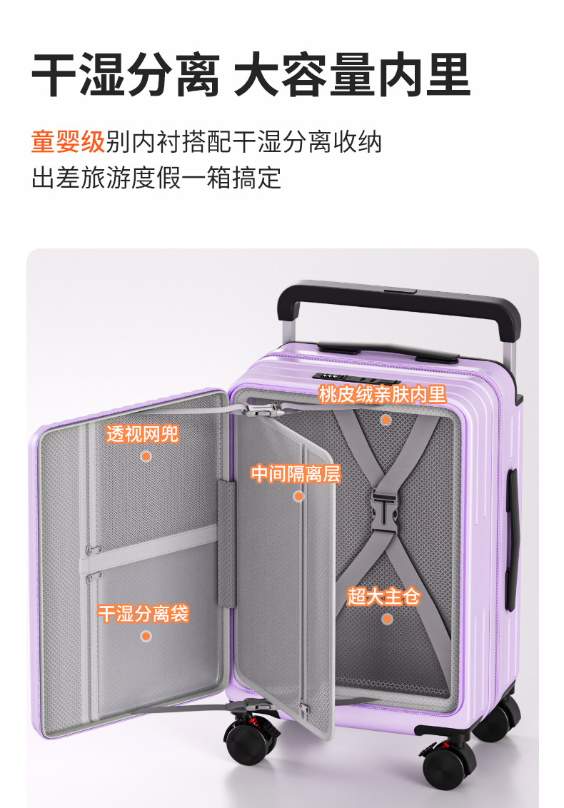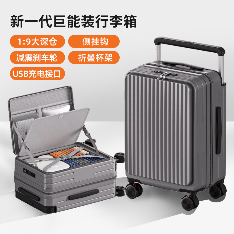 사이드 오프닝 수하물 케이스 여성의 20 인치 다기능 트롤리 케이스 딥 창고 대용량 24 인치 소음기 가방 남성