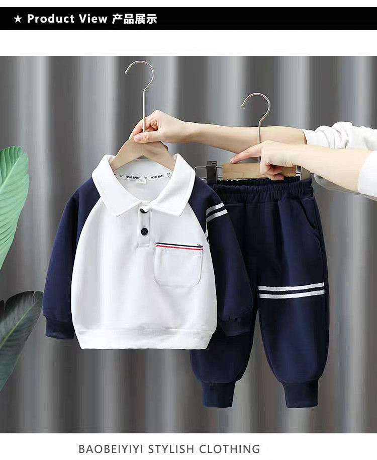[피부 친화적 인 부드럽고 편안한 밀착] 어린이 의류 소년 세트 아기 봄 옷 새로운 어린이 봄과 가을 서양식 옷